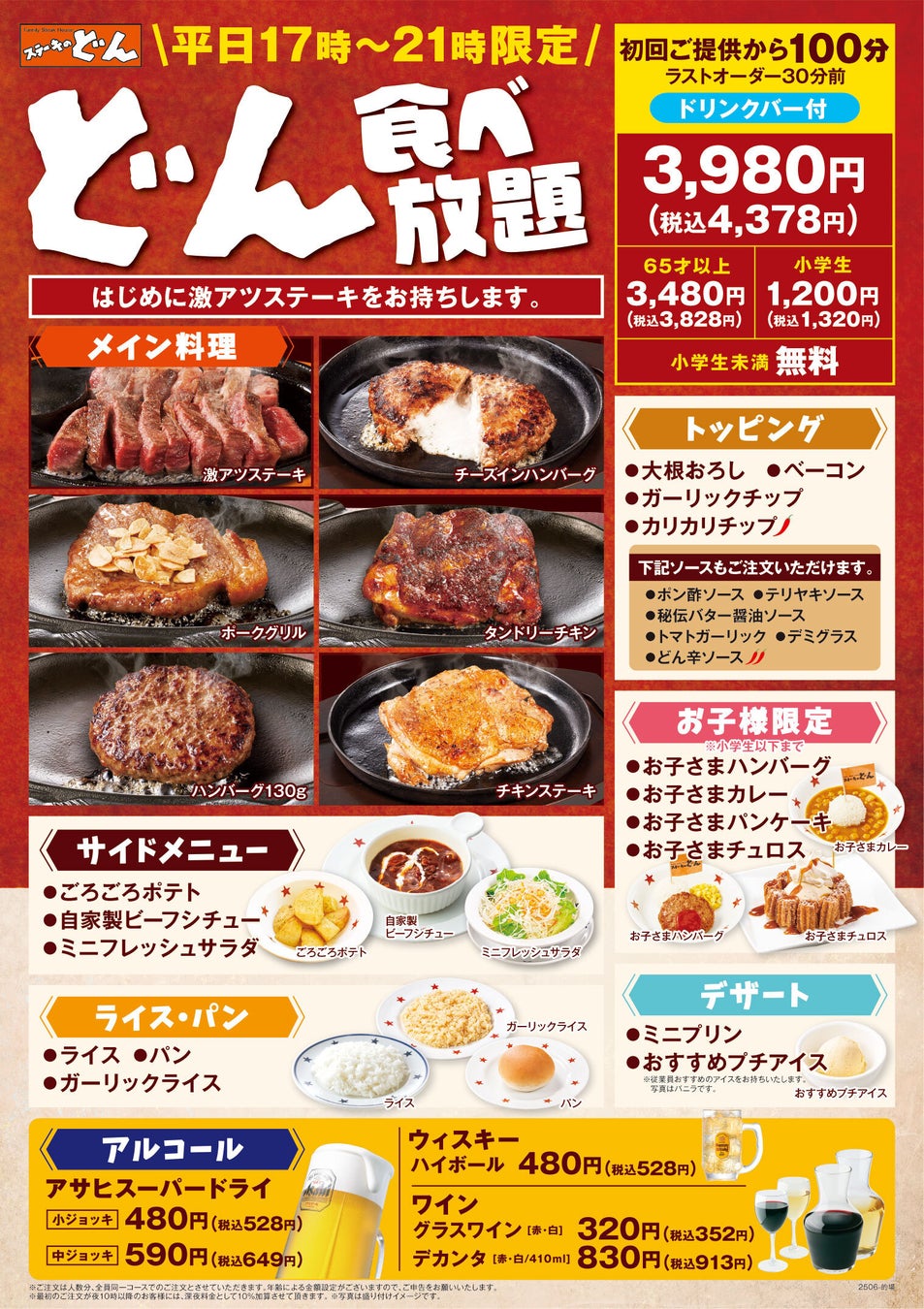 お肉をガッツリたべるなら「ステーキのどん」!的場店(埼玉県)で大好評の「どん食べ放題」が
