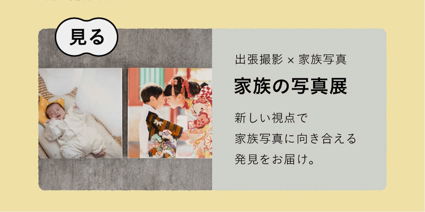 数年間にわたり、ご家族の大切な思い出をfotowaで紡いでくださってきた2組のご家族の家族写真を会場に展示します。撮影時のエピソードやご家族の写真への想いを併記し、「どの写真を、どんな形で残したいか」を考えるきっかけづくりを体感できます。