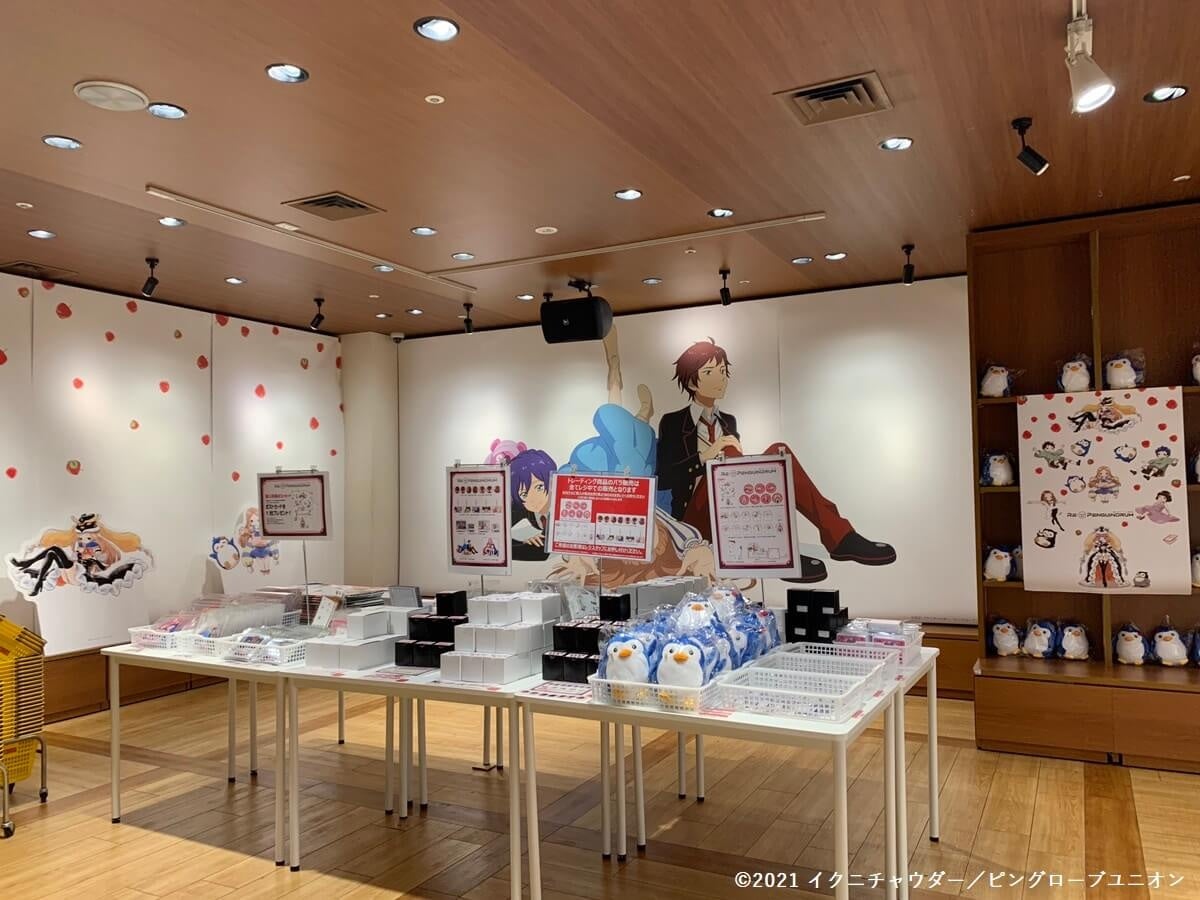 POP UPコーナーでは、たくさんのグッズとともに巨大な横断幕やスタンディパネルも登場しました。店内はグッズを購入するだけでなく、目で見て楽しめる要素も盛りだくさんです!