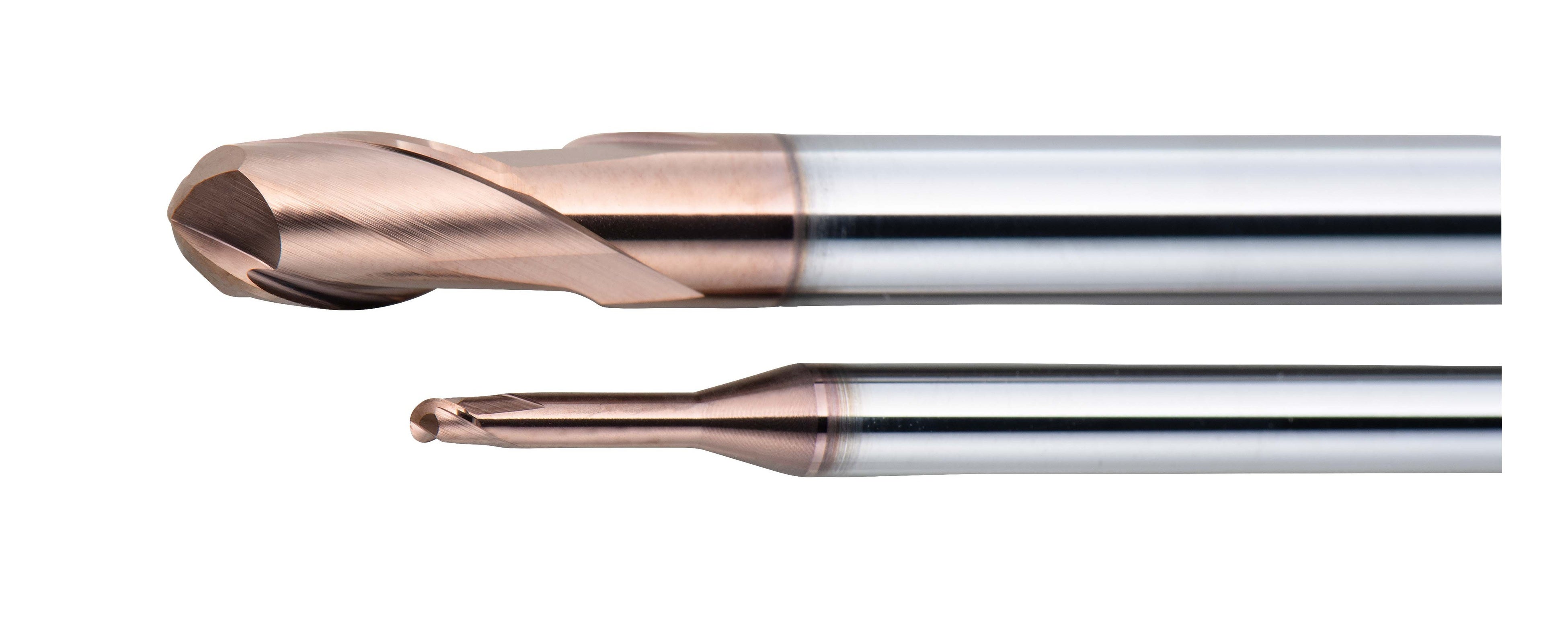 高硬度用ボールエンドミル:HRC60の高硬度鋼加工から、STAVAX(焼入)加工に最適なAXTシリーズを展示