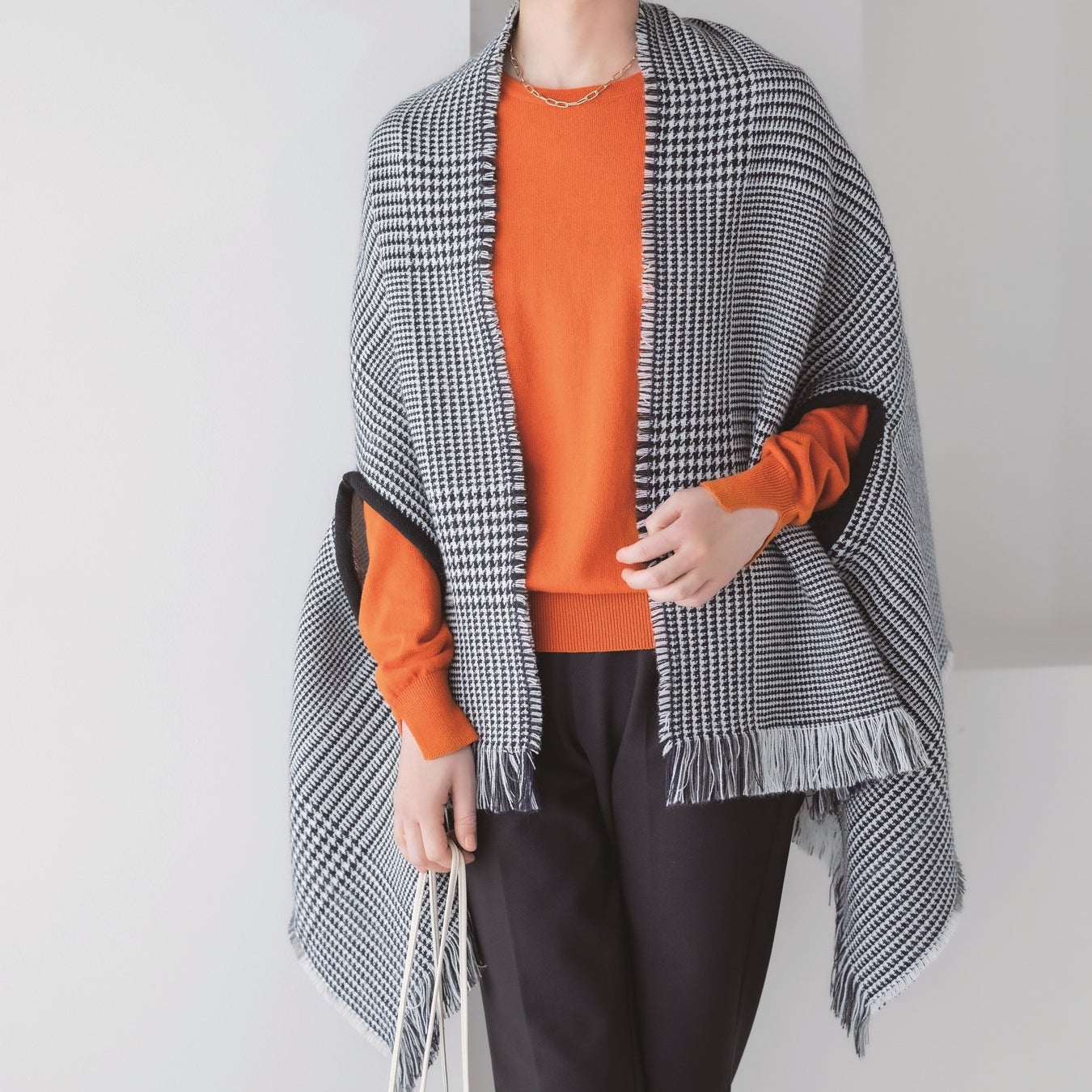 ・袖を通せるアームホール付きで、肩からずり落ちる心配がなく快適な着心地
