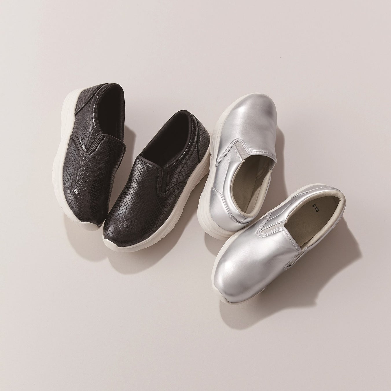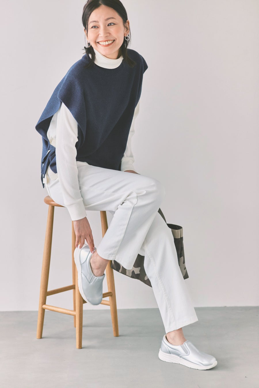 ・さっと脱ぎ履きができるシンプルなスリッポンはどんなスタイルにも合わせやすい