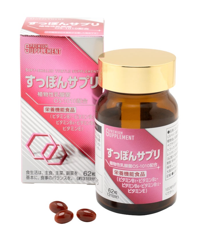 すっぽんは65種類※3もの栄養素を含む食材で、コラーゲンやアミノ酸、鉄、ビタミンA・B・Eなどの美容成分を含みます。「すっぽんサプリ」には、水や環境、えさにこだわり、抗生物質を一切使用せず養殖された高品質な国産すっぽんを丸ごと使用※4。また近年注目を浴びている植物性乳酸菌OS-1010や、ヒアルロン酸、プラセンタ、アスタキサンチン※5などの美容成分も配合しています。