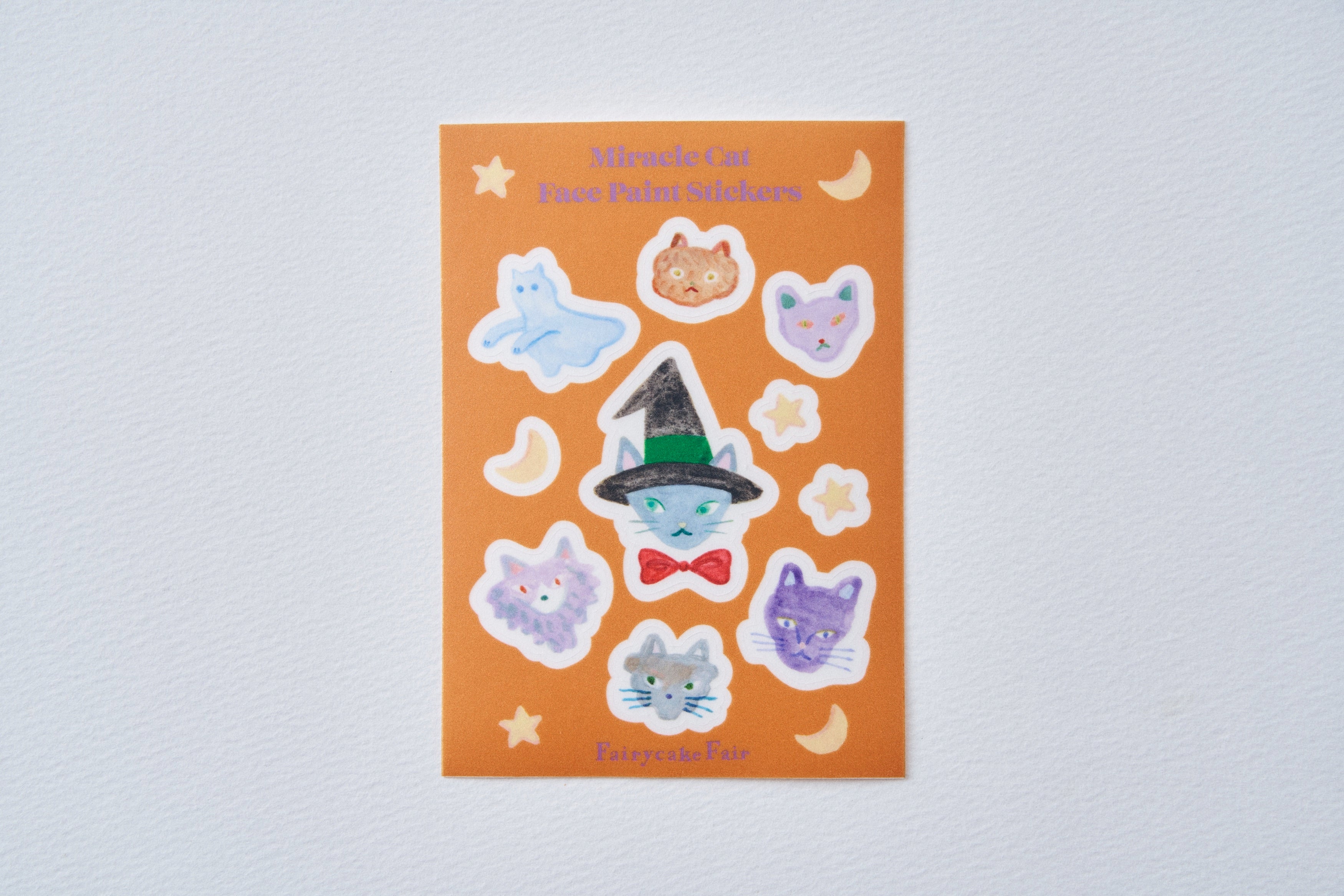 さらに、ハロウィンをもっと楽しめる「フェイスシール」とのセットも登場!前田ひさえさんの可愛いミラクルキャットたちを手軽に顔や肌に貼れるデコレーションシールです。お子さまのハロウィン仮装やイベント時にもおすすめ。ペイントよりも気軽で、剥がすのも簡単!ハロウィンシーズンにぴったりの遊び心たっぷりのアイテムです。