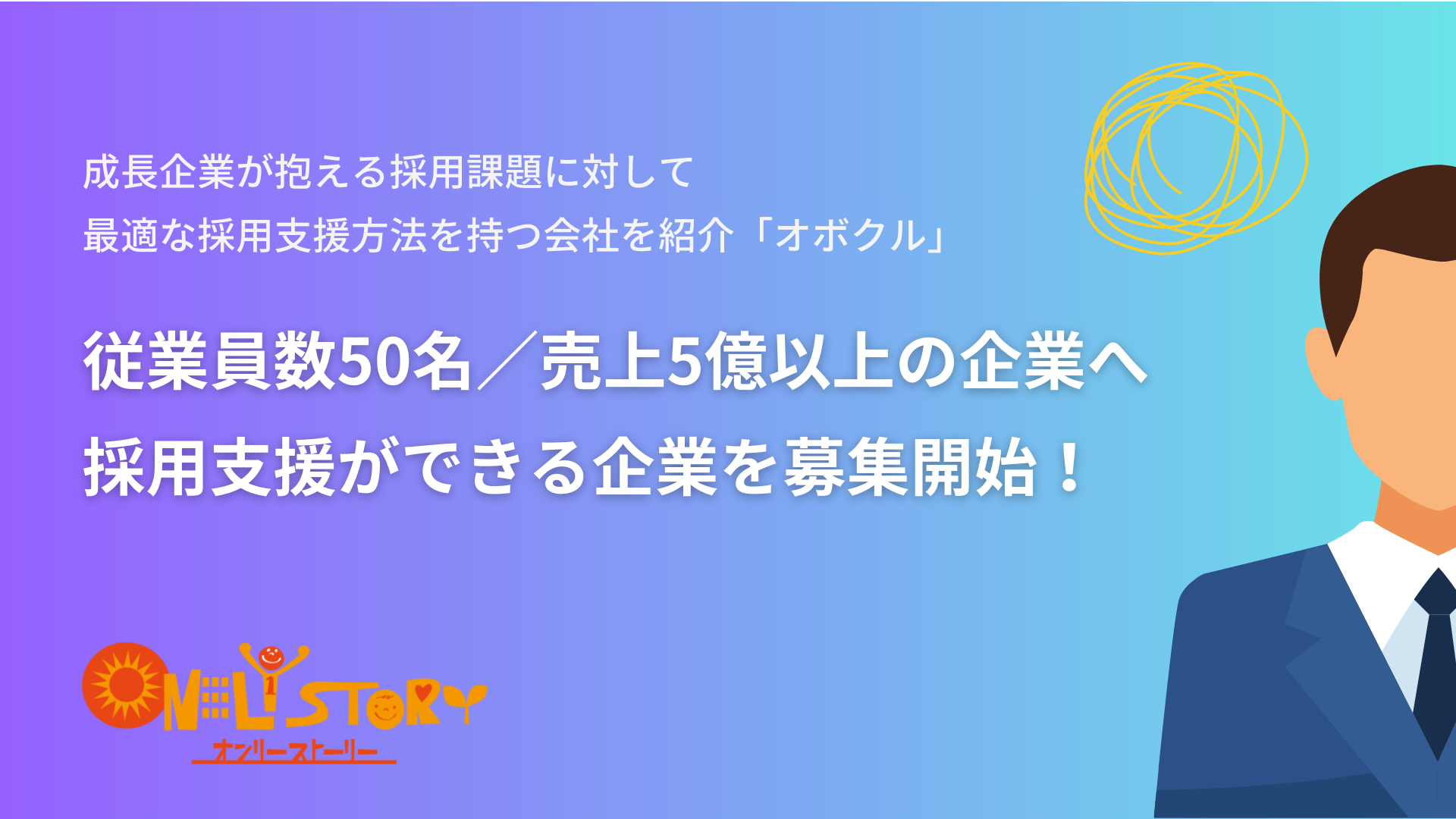 〈先着順に案内〉従業員数50名/売上5億以上の企業を対象とした採用支援ができる企業を募集開始