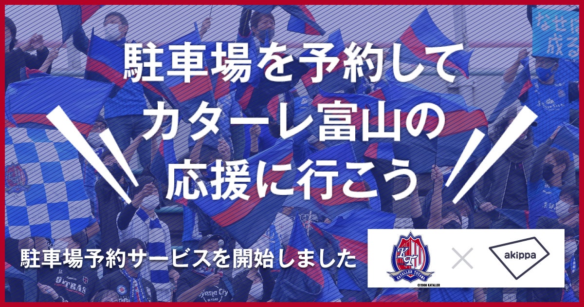 駐車場予約アプリ「akippa」を運営するakippa株式会社(代表取締役社長 CEO:金谷元気)は、サッカーJ3・カターレ富山と提携し、カターレ富山のホームスタジアムである富山県総合運動公園陸上競技場周辺に約20台分の予約制駐車場を確保しました。2022年3月27日(日)のホーム開幕戦分の予約を3月18日(金)より開始することをお知らせします。
