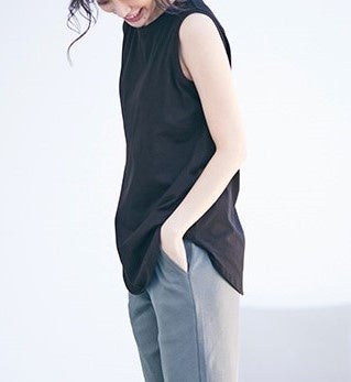 ■特長:綿100%の「Beautiful Cotton」を使用した接触冷感・UVカット機能付きのラウンド裾タンクトップ。見た目も着心地も涼やかで、インナーはもちろん1枚着としても着られる万能なアイテムです。