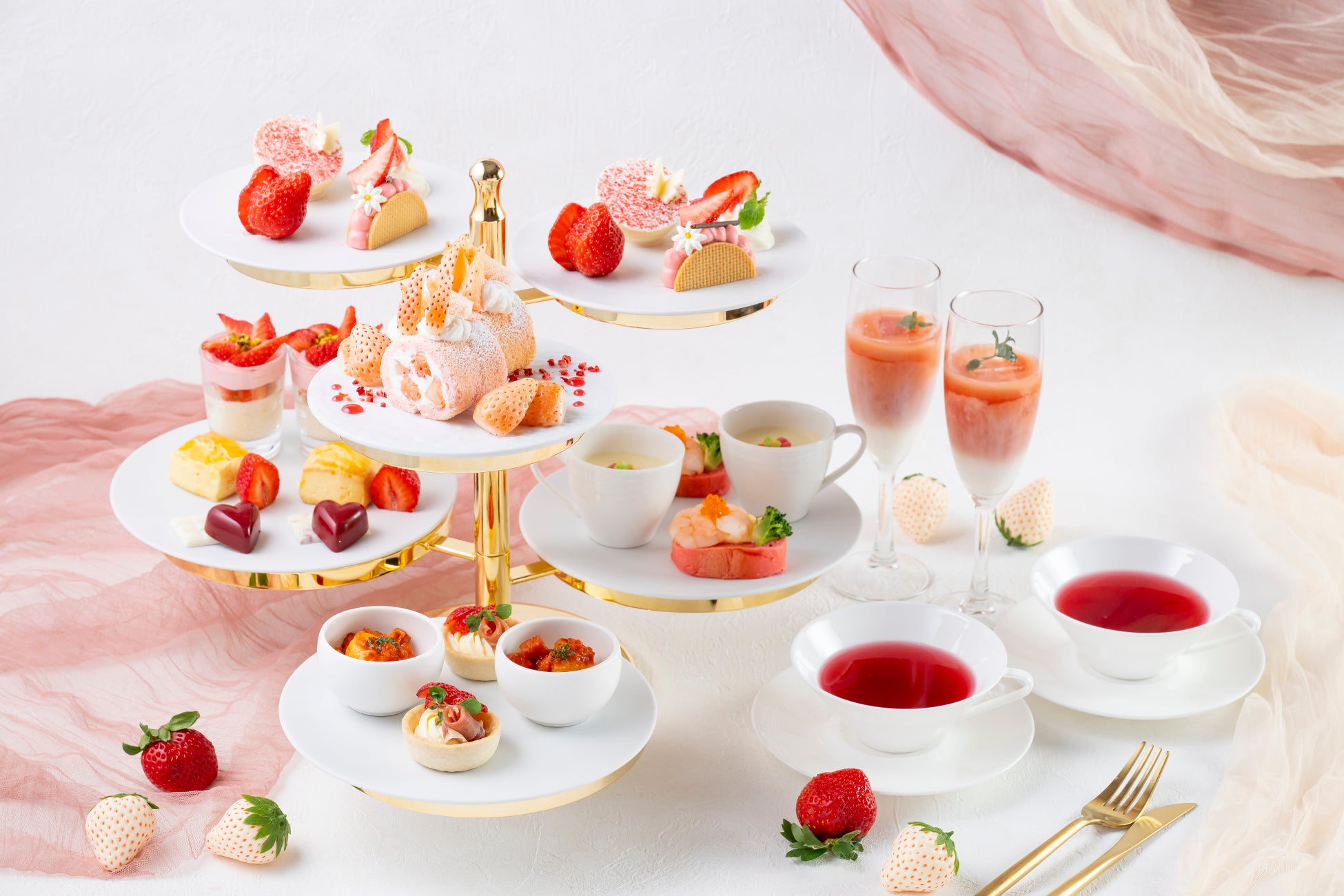 いちごが美味しい最旬期を迎える1月、2月は、毎年好評いただいているストロベリーアフタヌーンティーを開催。今年は、ピンク×白×赤の3 色で彩った、思わず撮影したくなるような写真映えする可愛らしいスイーツ&セイボリーをご用意いたしました。