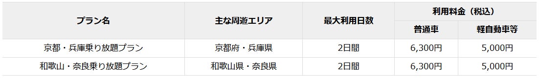 また、交通混雑期などを除き年間を通して販売することで、お好きなシーズンにご利用できるようになったほか、令和4年度に販売していなかった和歌山県と奈良県を対象エリアとしたプランを新たに販売します。