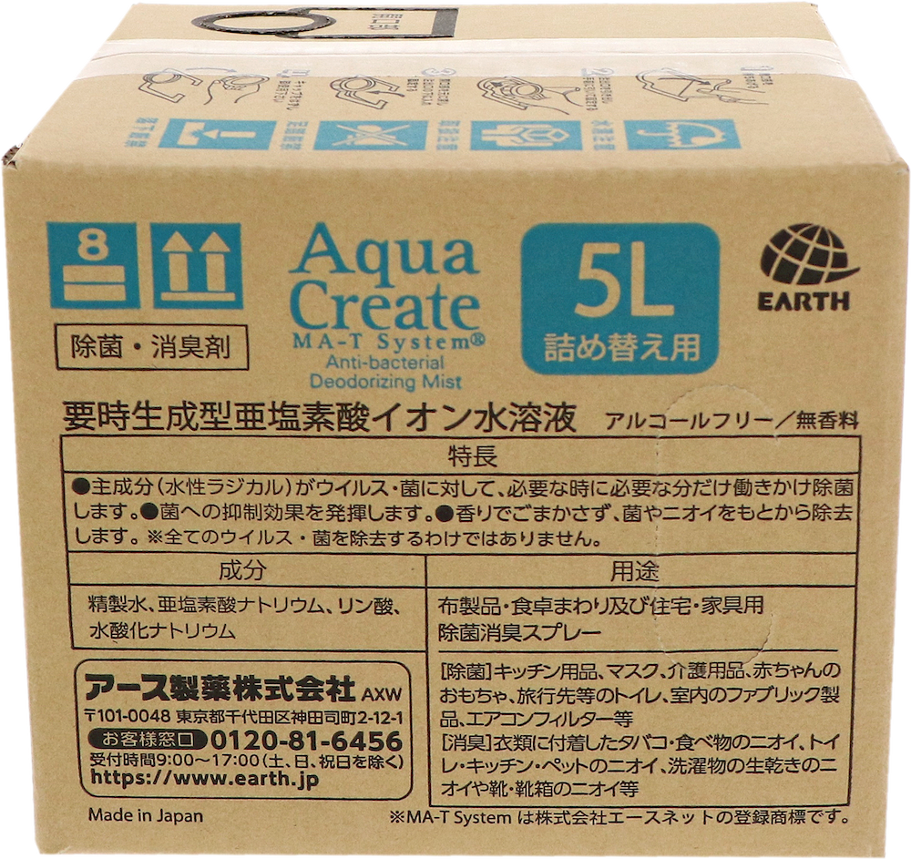革新的な酸化制御技術「MA-T(R)」を採用したアース製薬の『Aqua Create(アクアクリエイト)』が福祉用具の消毒方法に認定され衛生管理に貢献