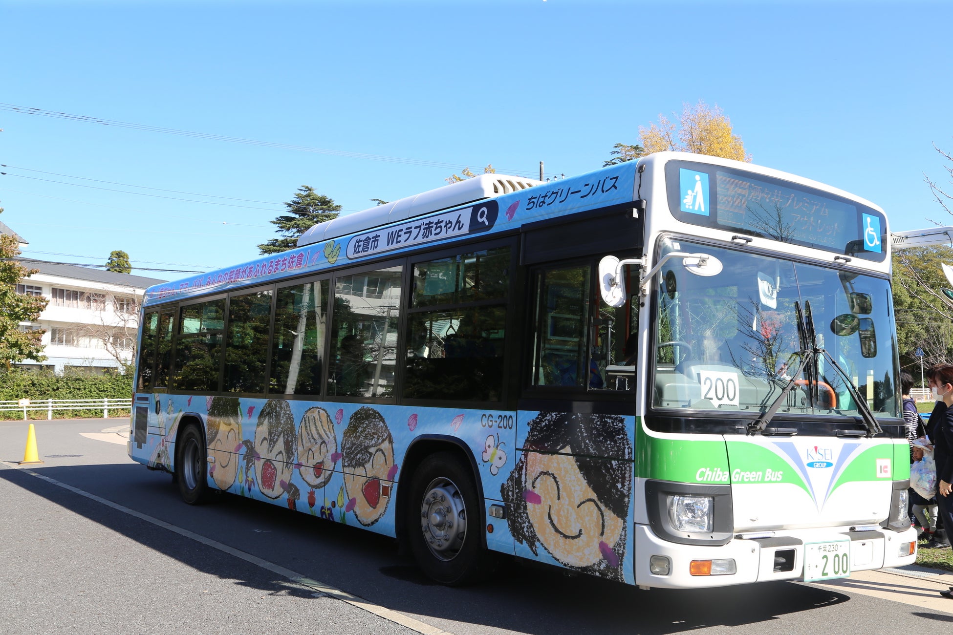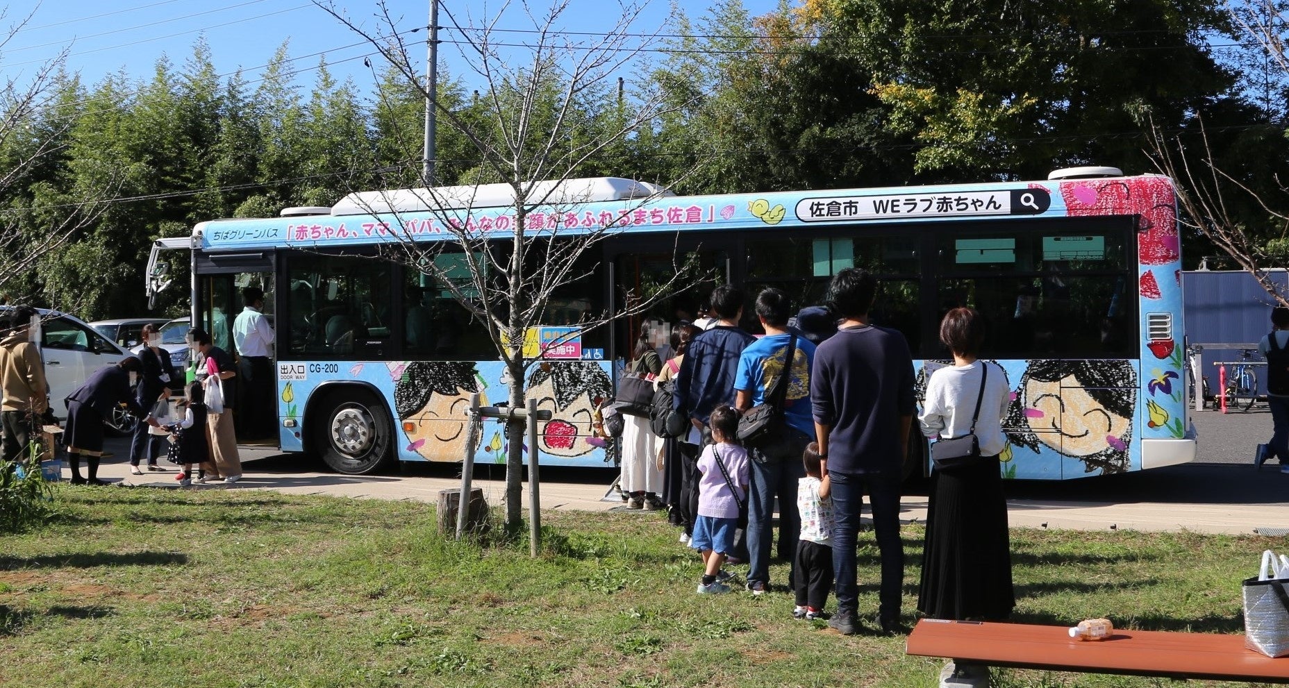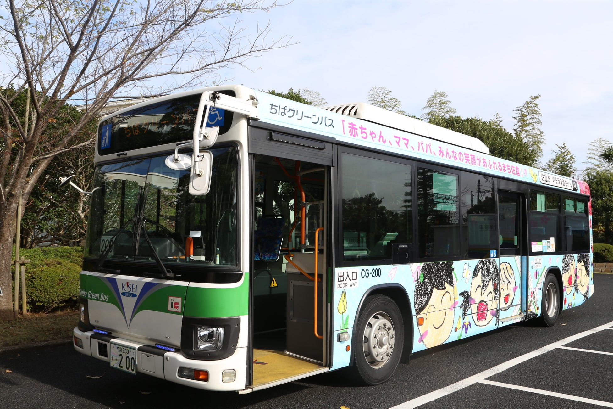 市内の小学生までを対象に「赤ちゃん、ママ、パパ、みんなの笑顔があふれるまち、佐倉」をテーマにイラストの募集を行い、集まった53作品の中から選ばれた1作品を市内路線バスにフルラッピングを行った「子育て応援バス」の運行を開始しました。