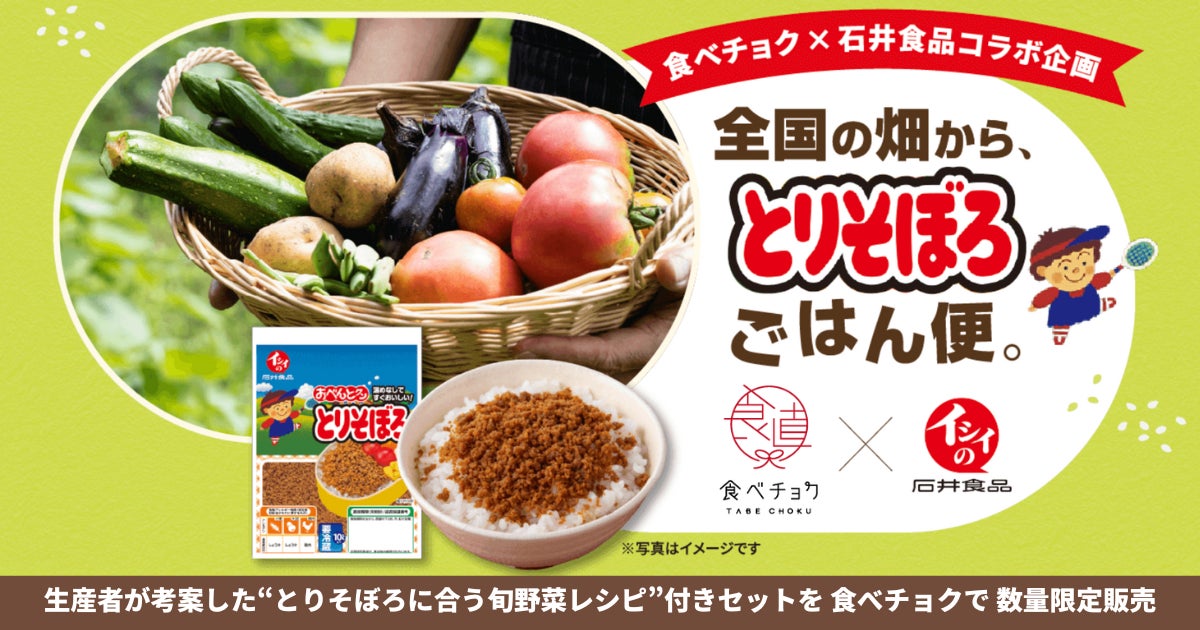 石井食品のロングセラー商品「とりそぼろ」に対して、食べチョク登録生産者が“うちの野菜に一番合う”食べ方を提案。レシピ総選挙キャンペーンも同時スタート。