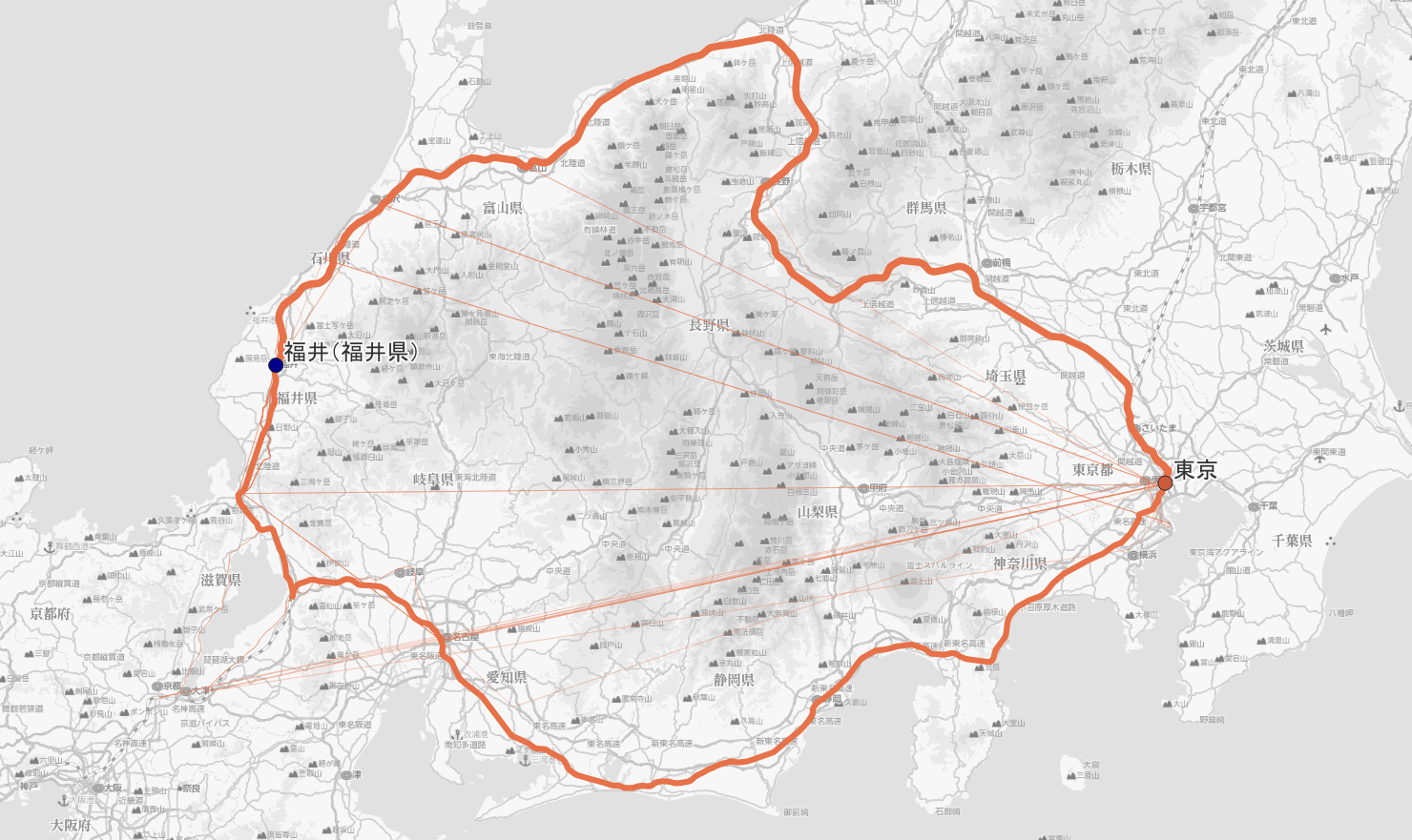 延伸後、東京駅-福井駅間の経路検索における傾向