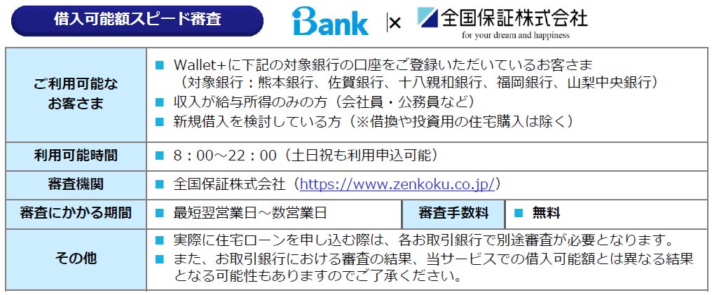 株式会社ふくおかフィナンシャルグループ(取締役社長 五島 久)傘下のiBankマーケティング株式会社(代表取締役社長 福田 公威、以下「iBank」)は、銀行公式アプリ「Wallet+(以下、ウォレットプラス)」にて、お客さまの住まいづくりをサポートする「住宅ローン計画」機能の提供を本日より開始いたしましたのでお知らせいたします。