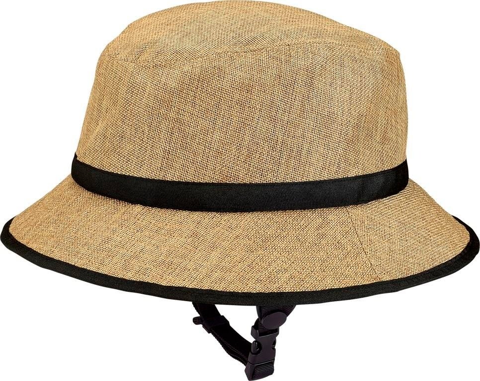 さらっとした涼しげなストロー風UVハット。後頭部1ヵ所、反射テープ付き。