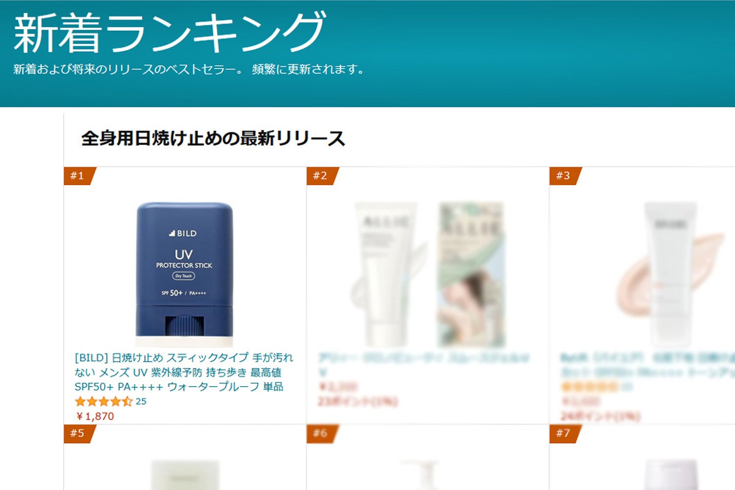 Amazonの日焼け止めカテゴリーにて、新着ランキング1位を獲得しました。