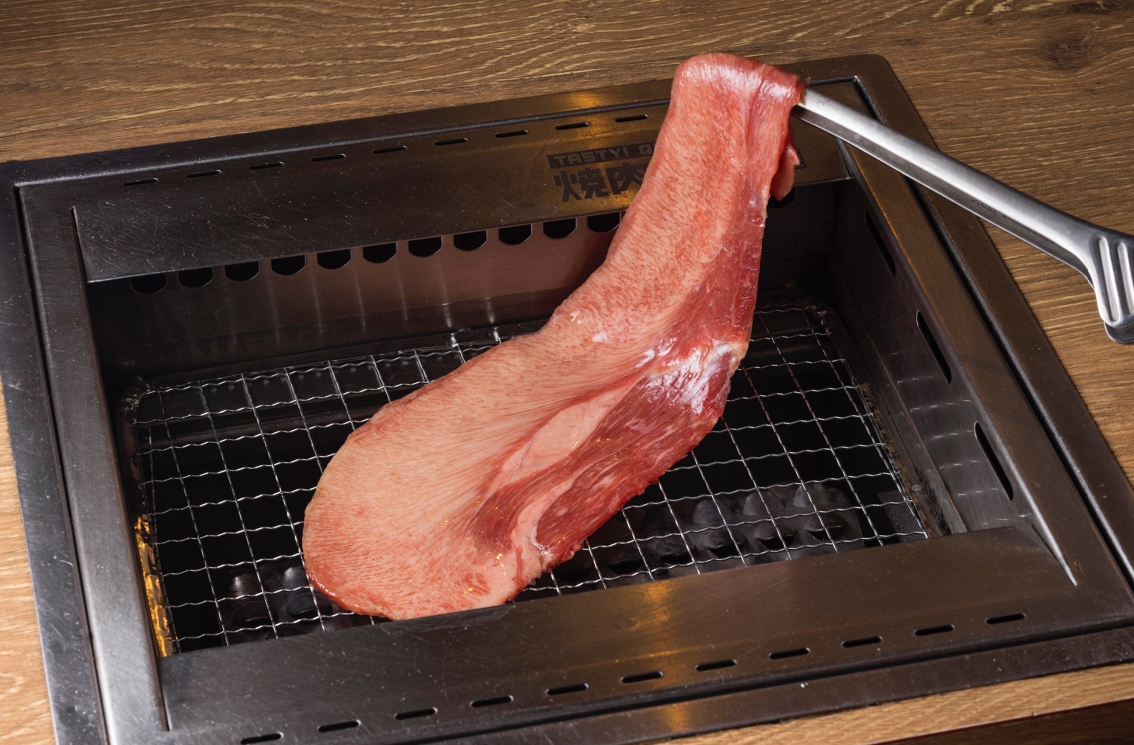 焼き網からハミ出しそうな大きいサイズの牛タンは、通常の牛タンの2.9倍以上(※1)