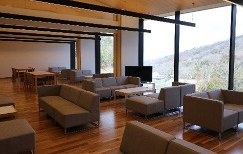 奈良市斎苑「旅立ちの杜」は、誰もが利用する火葬場が「暗い」「こわい」といった負のイメージの施設ではなく、「明るく」「安心できる」施設であるべきであるとの思いから、「周辺の環境と一体化した『森の中の美術館』」をコンセプトとして整備を進めてきました。待合室を一面のガラス張りとして、そこから高円山や遠くに奈良市街が見える眺望は他の施設にはない、明るく開放的な空間を実現しています。