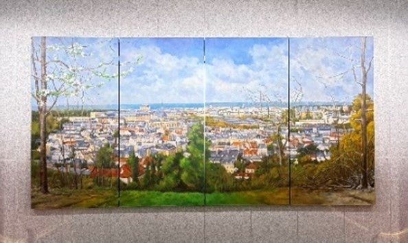また、2つある施設エントランスには、フランス・ベルサイユ市在住の画家・大石良太氏から寄贈された絵画、「奈良風景『古都遠望』」、「ベルサイユ春夏秋冬」を展示し、参列された皆様をアートの温もりに包まれた空間でお迎えしています。