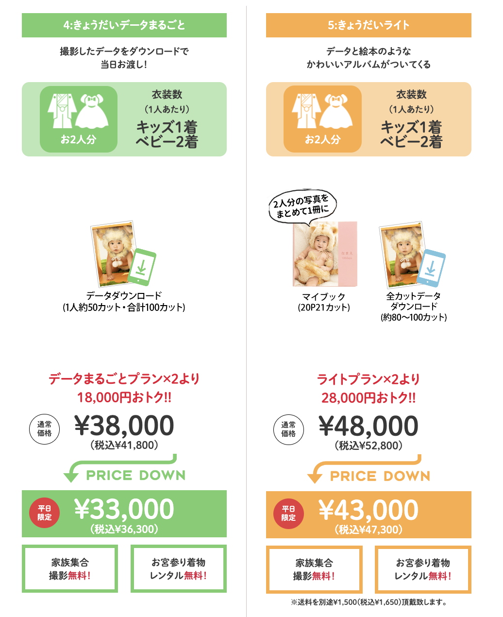 どちらも衣装数は、赤ちゃんなら1人2着、七五三なら1人1着の撮影となります。