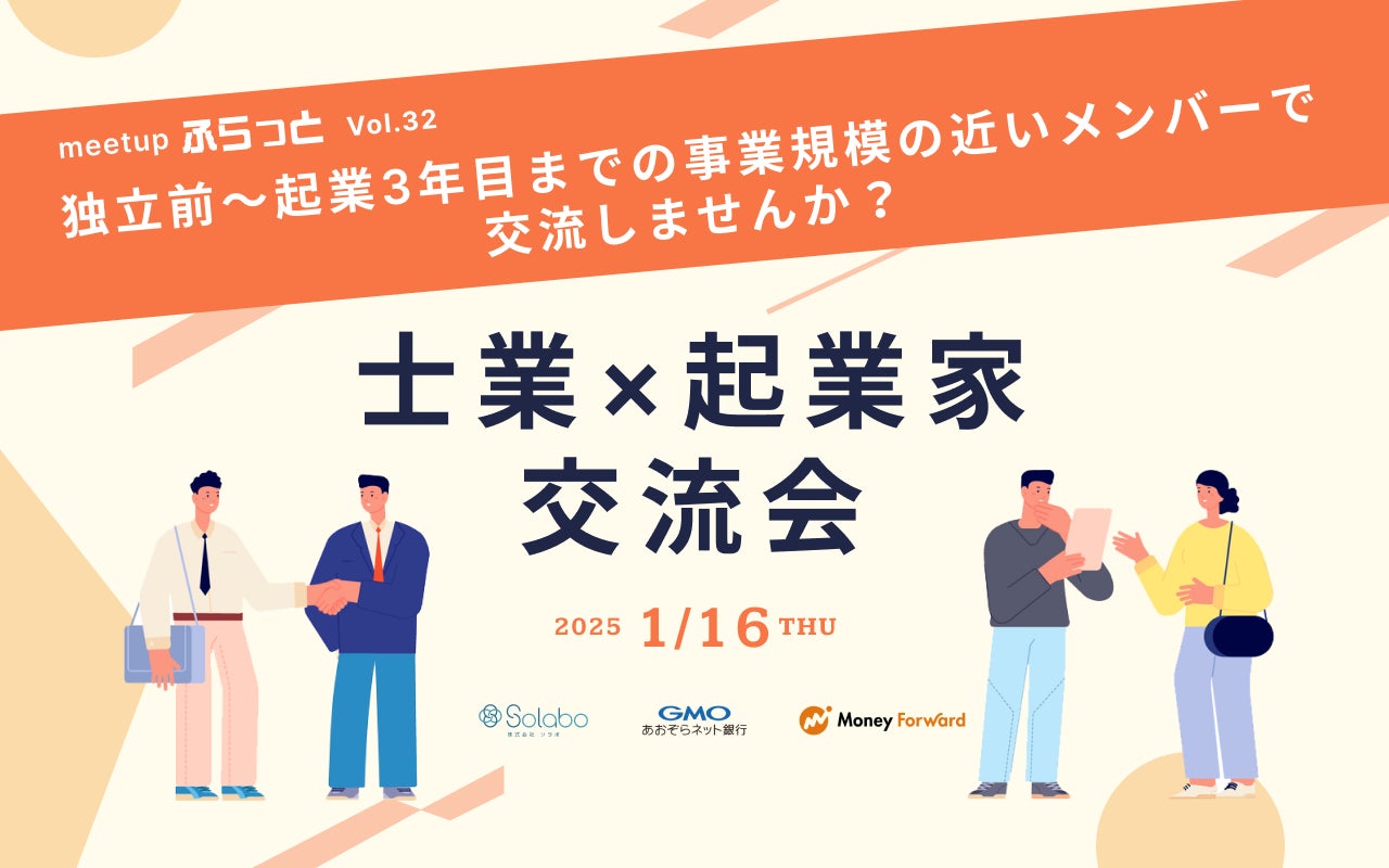 株式会社SoLabo(本社:東京都千代田区、代表取締役 田原 広一)が運営する、税理士・会計士コミュニティふらっとは、GMOあおぞらネット銀行株式会社(本店:東京都渋谷区、代表取締役会長 金子 岳人、代表取締役社長 山根 武)、株式会社マネーフォワード(本社:東京都港区、代表取締役 辻 庸介)と共催で独立前~起業3年目までの事業規模の近い士業・起業家向けに交流会を開催いたします。