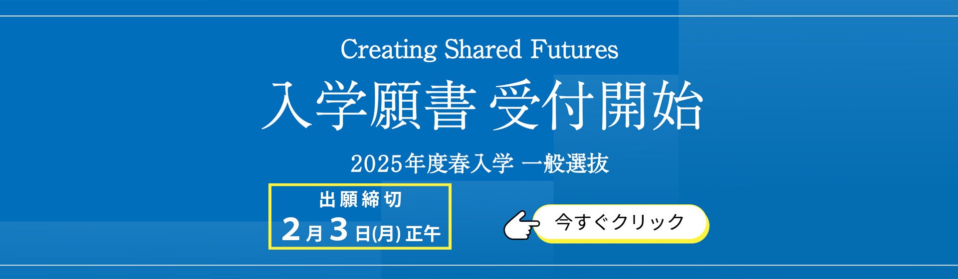 叡啓大学(学長:有信睦弘、所在地:広島市中区)は、2025年1月27日(月)から2月3日(月)正午まで、一般選抜の出願を受け付けます。本学独自の日程で選抜を実施するため、他の国公立大学の前期・中期・後期日程に出願することができ、また、2次選考はオンライン面接のため、全国どこからでも受験可能です。
