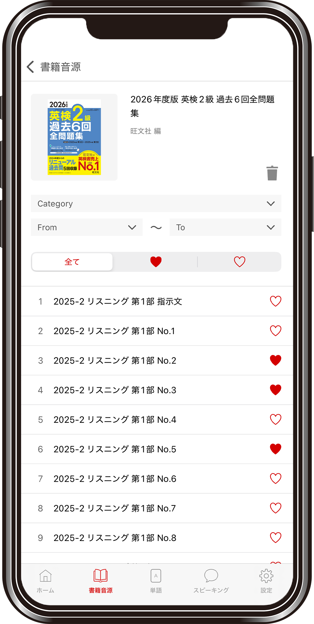 本書の音声は旺文社公式アプリ「英語の友」と音声データダウンロードに対応。掲載回すべてのリスニング・面接音声を収録しています。(面接音声は1~3級のみ収録。4・5級のスピーキングテスト音声は収録されていません)