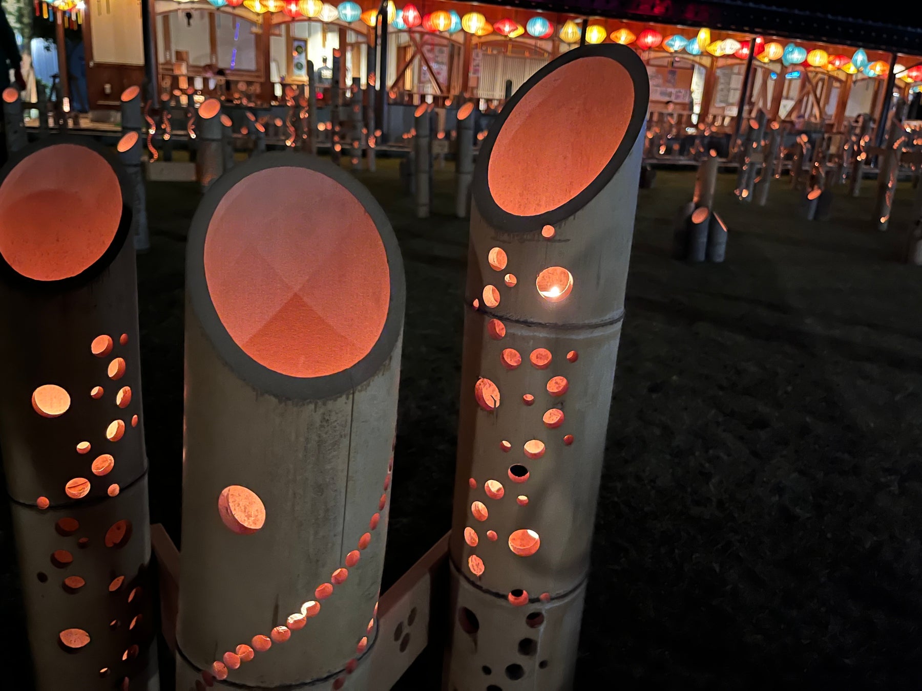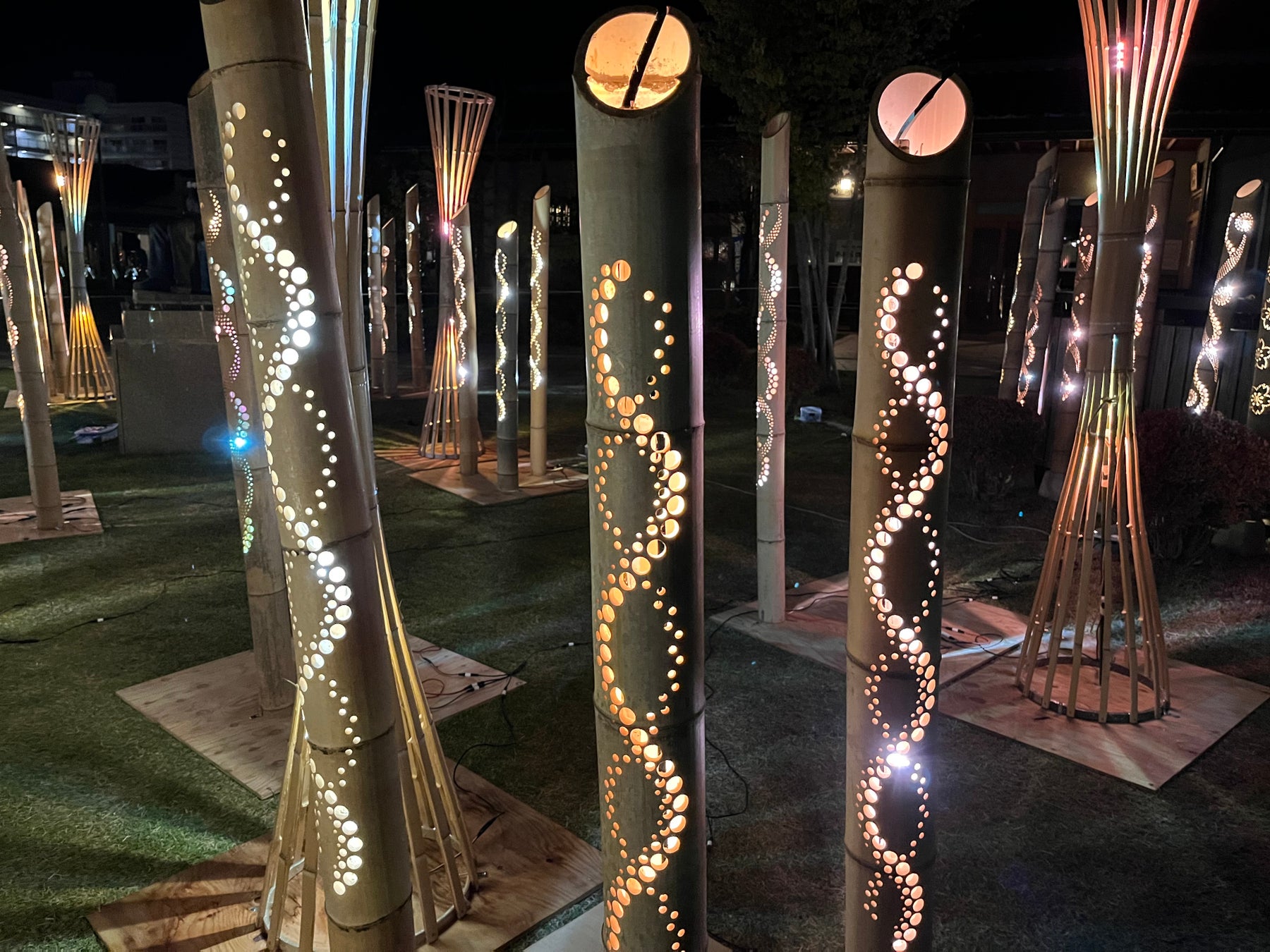 あわら湯のまち広場に、竹筒に細工を施した大小さまざまな「竹灯り」が設置されます。竹灯りが、光のアートを作り出し、あわら温泉街を優しい癒やしの光で包み込みます。晩秋の夜、竹灯りに包まれてみませんか?