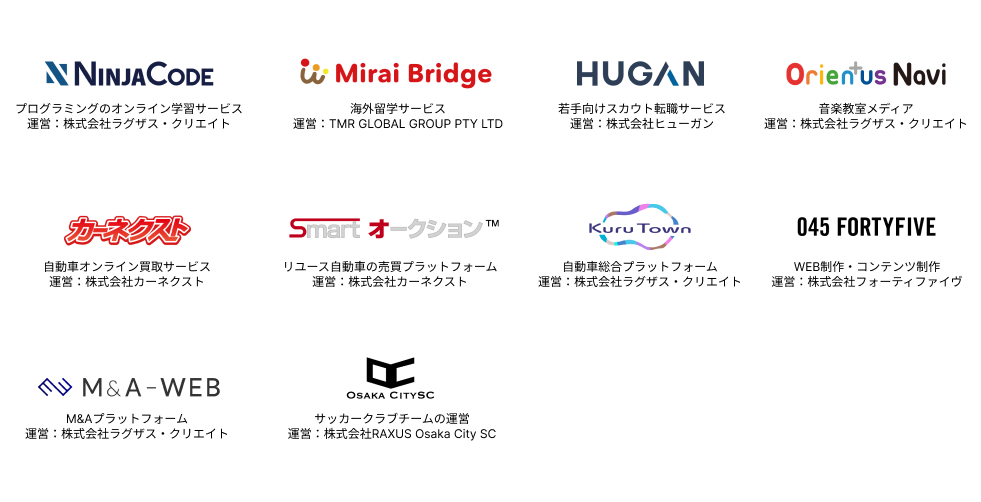 ラグザスグループは、ミッションである「今ここにない未来を創り出す」をもとに、創業以来一貫してインターネットのプラットフォーム事業やインターネットメディア事業を通じた社会への貢献を追求しています。「新たな価値の創造と、関わり合う人が幸せになること」を軸に顧客を最優先とした多様な事業で、継続的な企業価値の向上を目指しています。