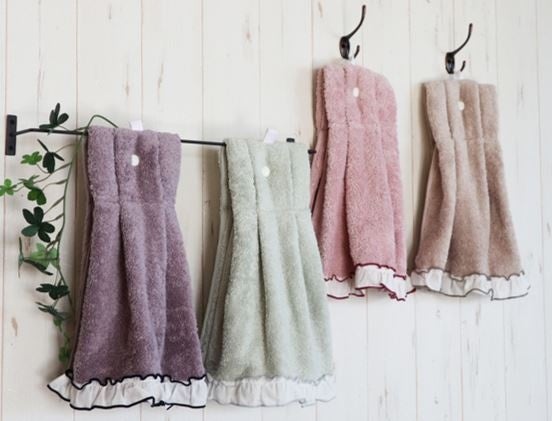 トイレ、キッチン、洗面所のタオルとして愛用しています。フェイスタオルを掛けるより長さがちょうど良く、落ちてくるというストレスもないため大変気に入っています。他にも落ち着いた柄やシンプルな柄が増えると嬉しいなと思っています。
