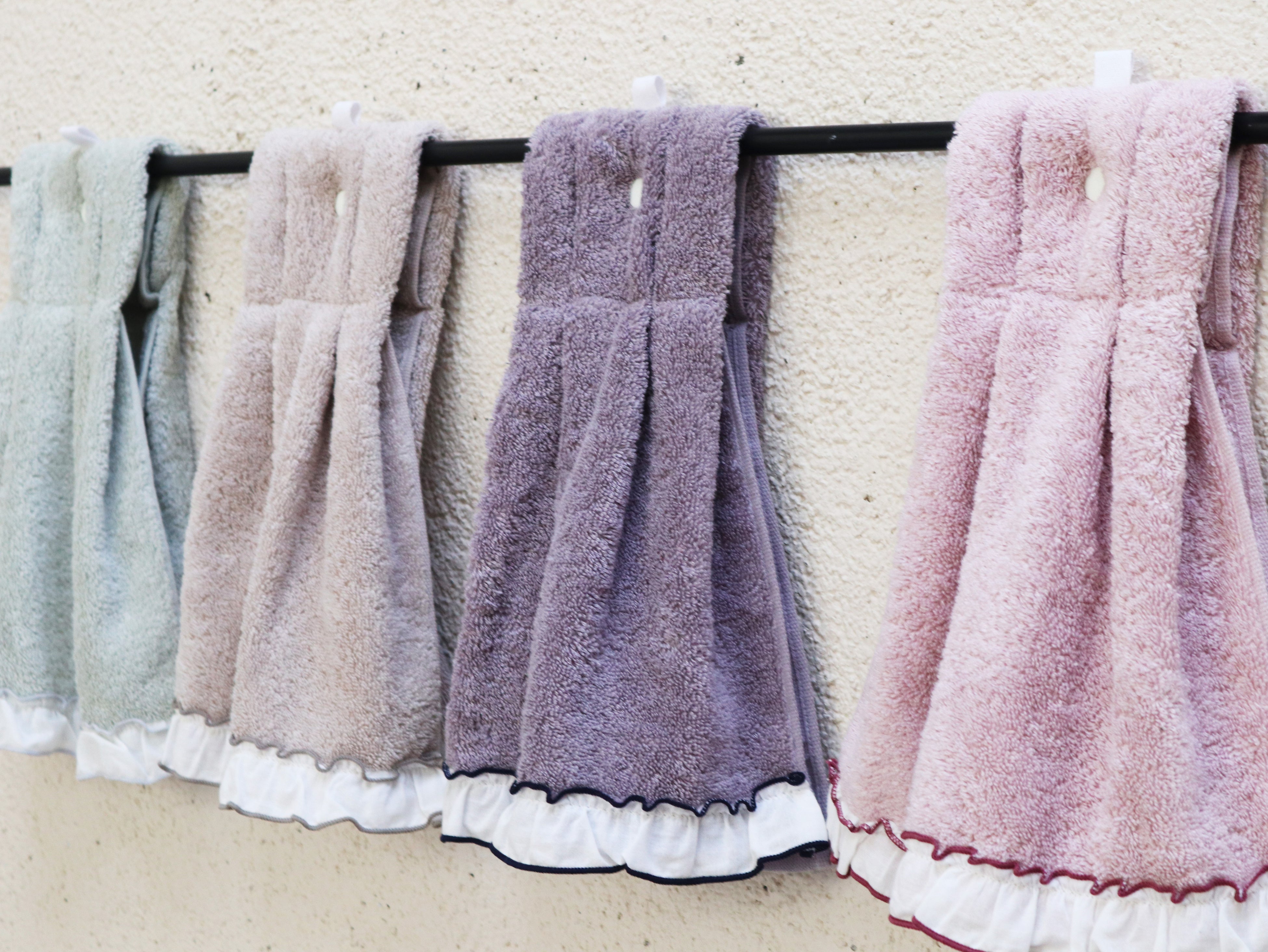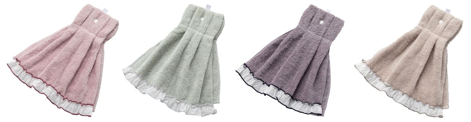 定番デザインのフリルつきドレスタオルは4色のカラー展開