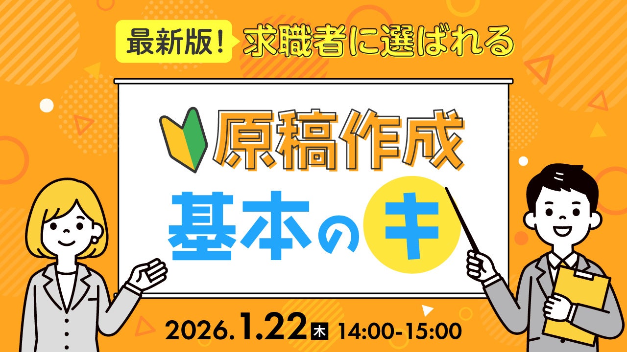 「働く」に関する社会課題をビジネスで解決するキャムコムグループの株式会社天職市場(以下天職市場、本社:東京都新宿区、代表取締役:春名敬太)は、2026年1月22日(木) 14:00よりオンラインセミナー「最新版!求職者に選ばれる原稿作成基本のキ」を開催いたします。