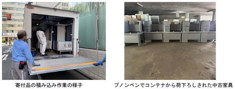 家具の寄付方法について模索していたところ、NXグループの日本通運株式会社(代表取締役社長:堀切 智)とNX商事株式会社(代表取締役社長:秋田 進)がカンボジアへ中古オフィス家具を寄付する取組みを行っていることを知り、両社の協力を得ることとなりました。カンボジアは経済発展が進む一方、教育や社会福祉の分野においては引き続き支援が必要とされています。その中でも、教育機関や公共機関は資金不足や設備の不備といった課題に直面しています。これらの課題解決に寄与するべく、損害保険業界では初めてNX商事の中古オフィス家具海外寄付事業「どねサッと」に参画し、自社の中古オフィス家具を提供することとなりました。