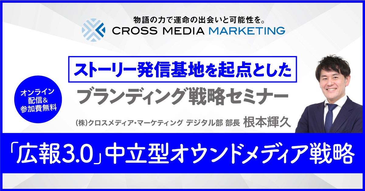 ブランディング戦略は、ストーリーも実装した広報活動(3.0)へ変えていく必要があります。そのストーリーを実装したコンテンツを「ストーリーの発信基地」としてのオウンドメディアで展開し、同じ未来を信じる仲間(顧客・従業員、株主など)をつくることで、企業成長の限界突破していくことが可能になります。本セミナーでは、その考え方から具体的な手段までお伝えいたします。