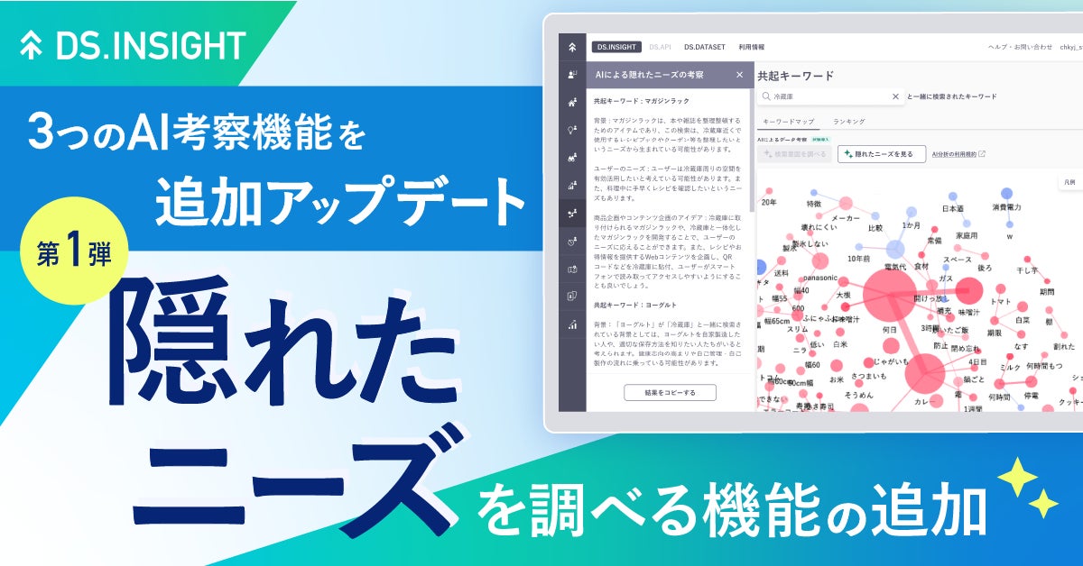 【ヤフー・データソリューション】「DS.INSIGHT」に3つの生成AI機能を連続で試験導入 第1弾は検索キーワードから「隠れたニーズ」を生成AIが分析する新機能