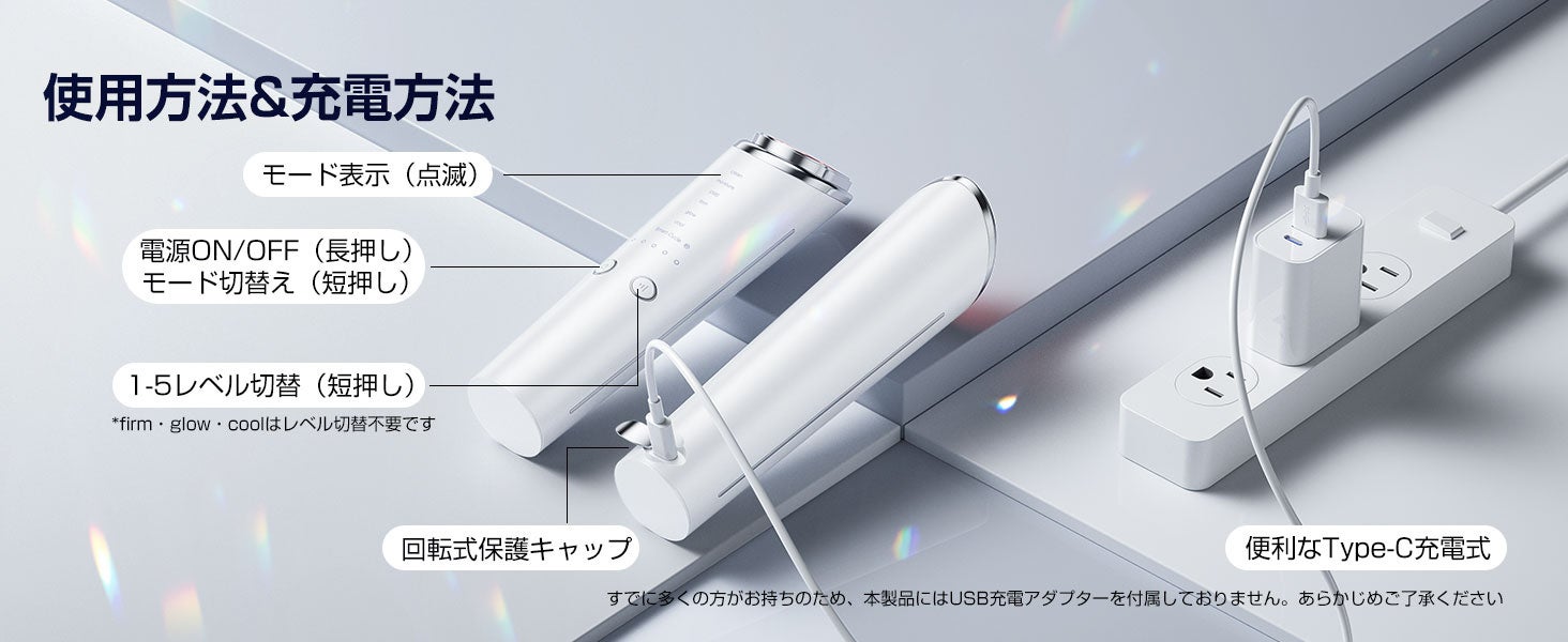 利便性: USB Type-C充電式を採用。軽量設計で、旅行や出張先でも本格的なケアが可能です。