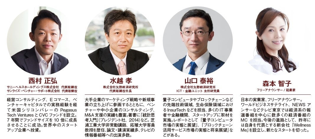 また、数多くのスタートアップや中小企業のコンサルティング、M&A支援の実績も豊富な矢野経済研究所代表取締役社長 水越 孝氏とともに「日本におけるスタートアップエコシステムの課題と未来」についてトークセッションを行います。司会はテレビ東京 ワールドビジネスサテライトのキャスターも務めた森本智子アナウンサーの進行によって進められます。