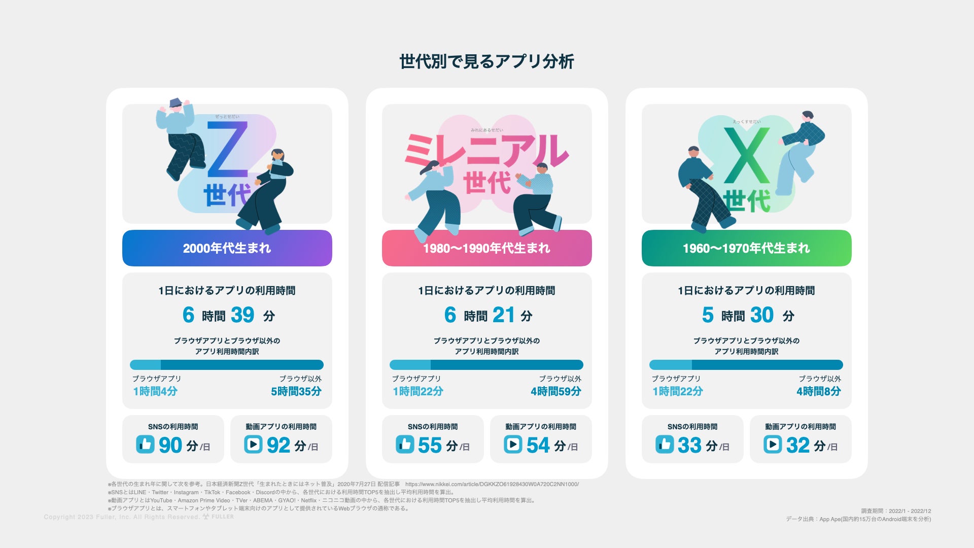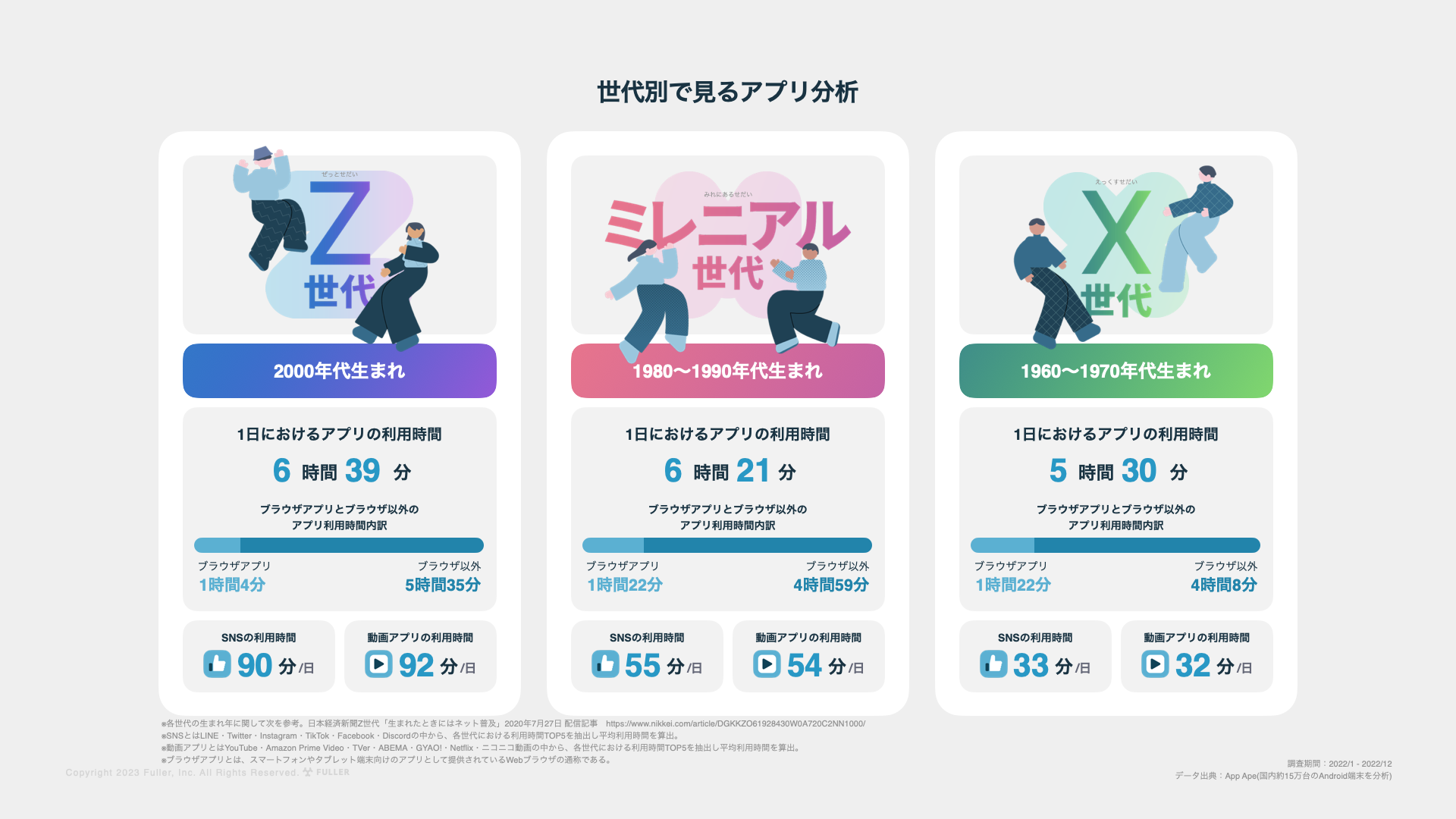 「Z世代・ミレニアル世代・X世代」世代別で見るアプリ分析: