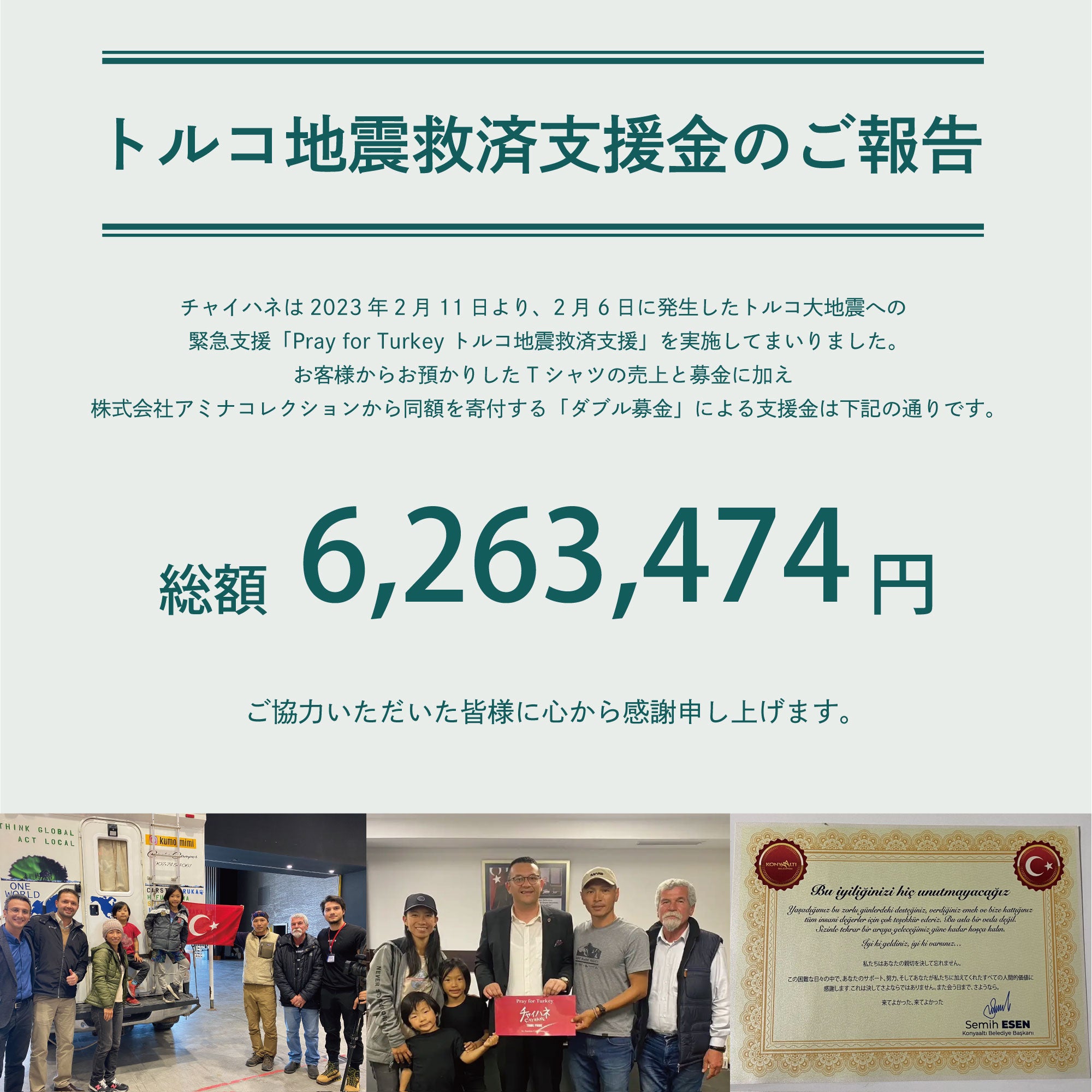 2023年2月11日(土)よりチャイハネが実施してまいりました「Pray for Turkey トルコ地震救済支援」の取り組みにおいて、ご協力いただいた皆様に心から感謝申し上げます。