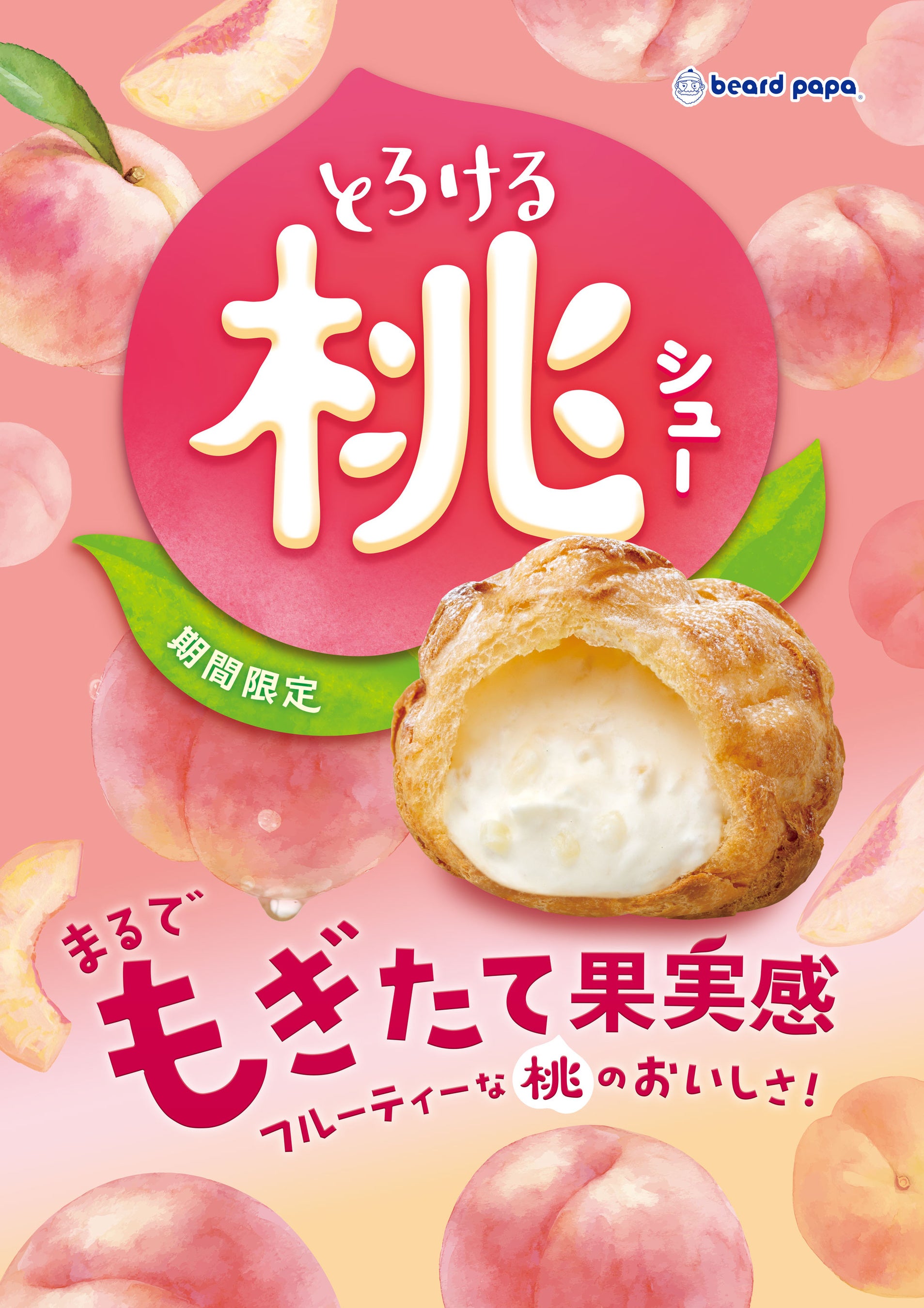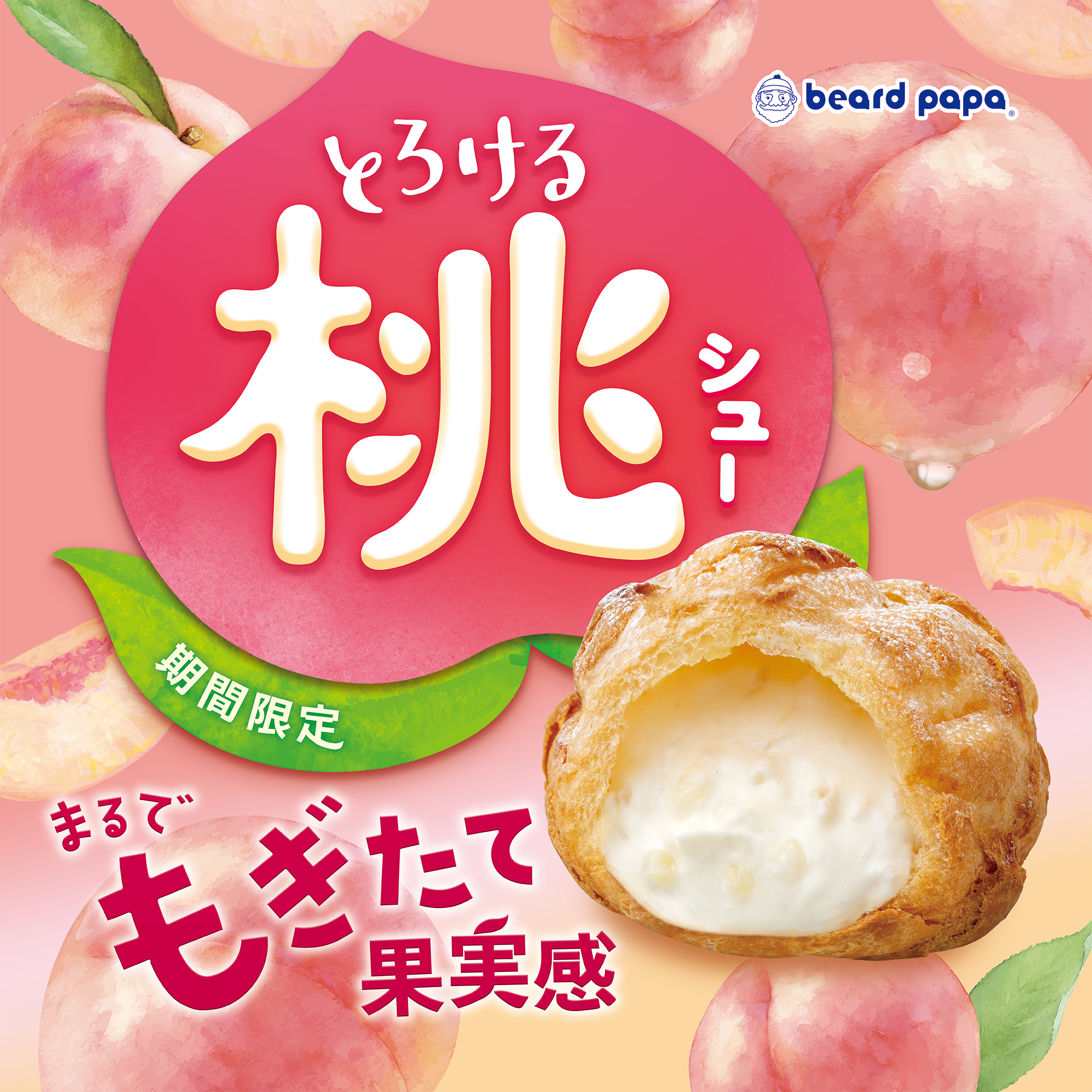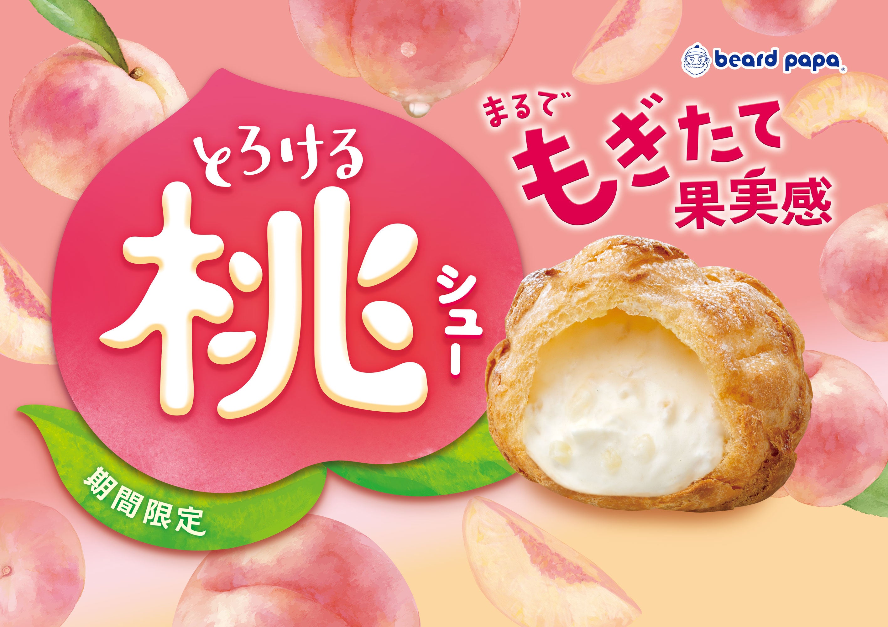 株式会社DAY TO LIFE(本社:大阪府大阪市北区、代表取締役:杉内健吉)が展開するシュークリーム専門店ビアードパパは、2025年5月1日(木)より、“とろける桃シュー”を5月限定で販売いたします。今年の“とろける桃シュー”は、よりジューシーな桃の味わいを感じる白桃クリームにリニューアルいたしました。口に入れた瞬間に広がる、とろけるような桃の口どけとみずみずしい果実感が特長です。選べるシュー生地は3種類展開しており、お好みのシュー生地と白桃クリームの組み合わせをお楽しみいただけます。また、ビアードパパで毎年人気の抹茶フレーバー“玉露抹茶シュー”も同時発売いたします。
