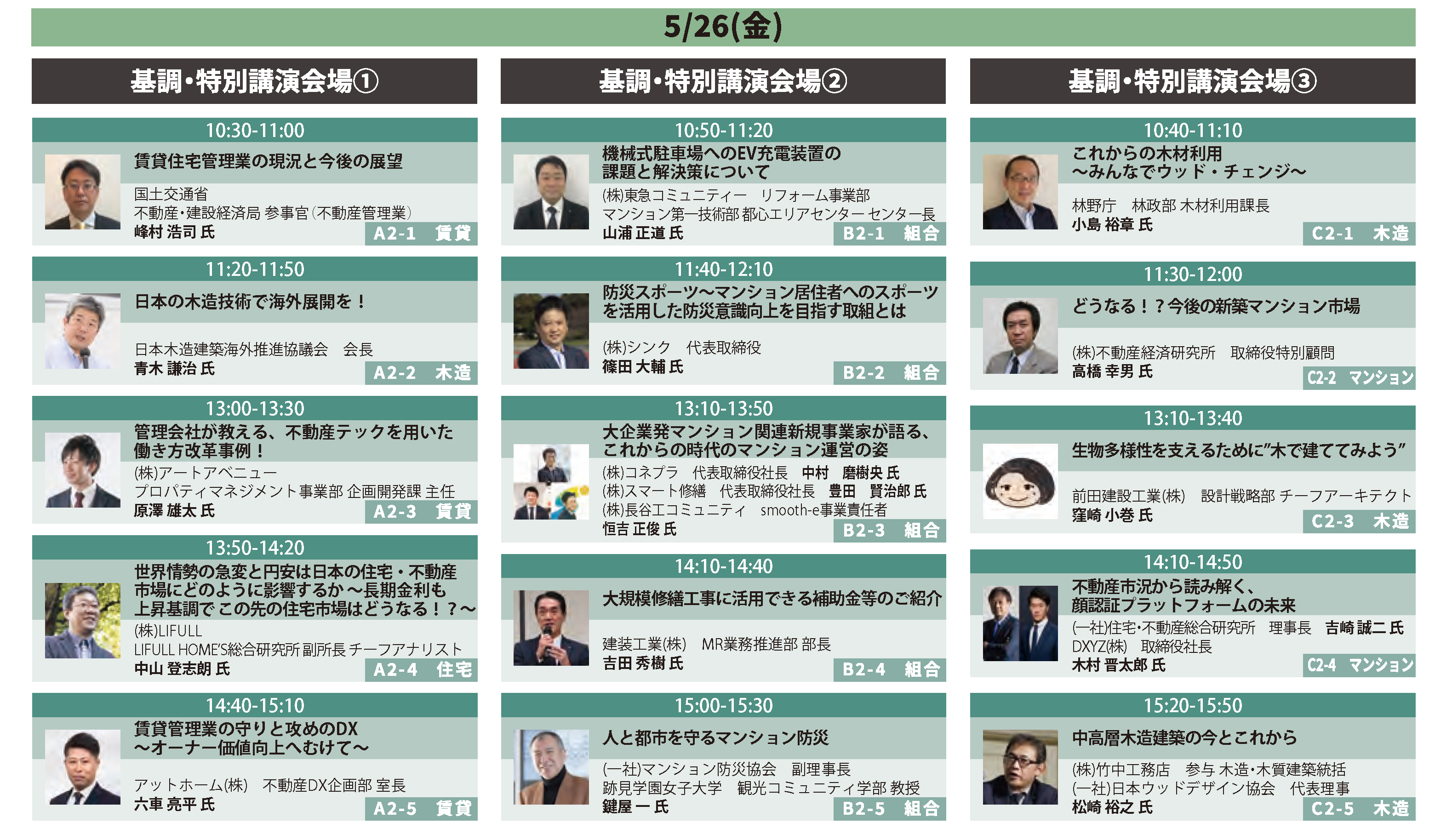 「住宅ビジネスフェア」「非住宅木造建築フェア」「マンション総合EXPO」「マンション管理組合サポート展」「賃貸住宅・アパートEXPO」の5展で構成