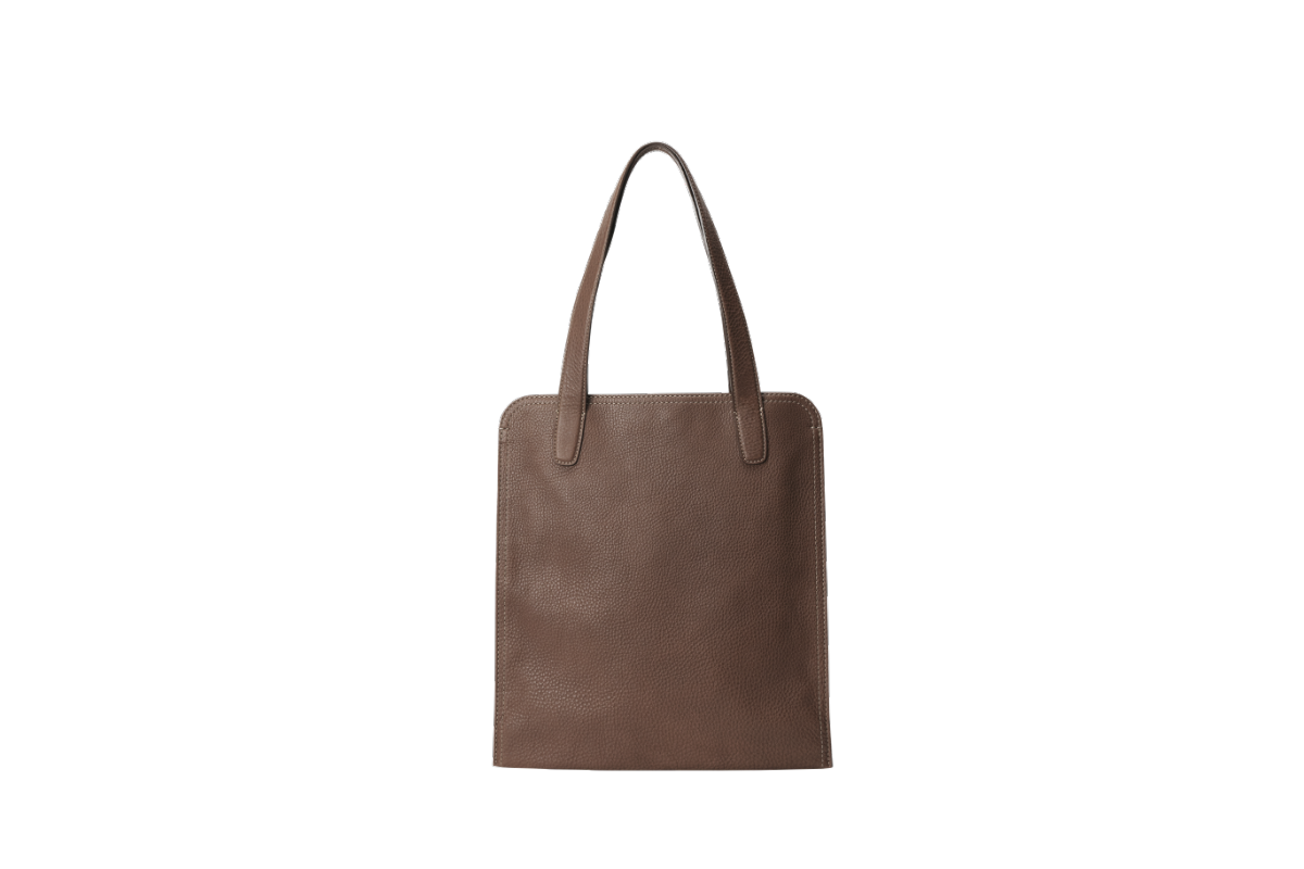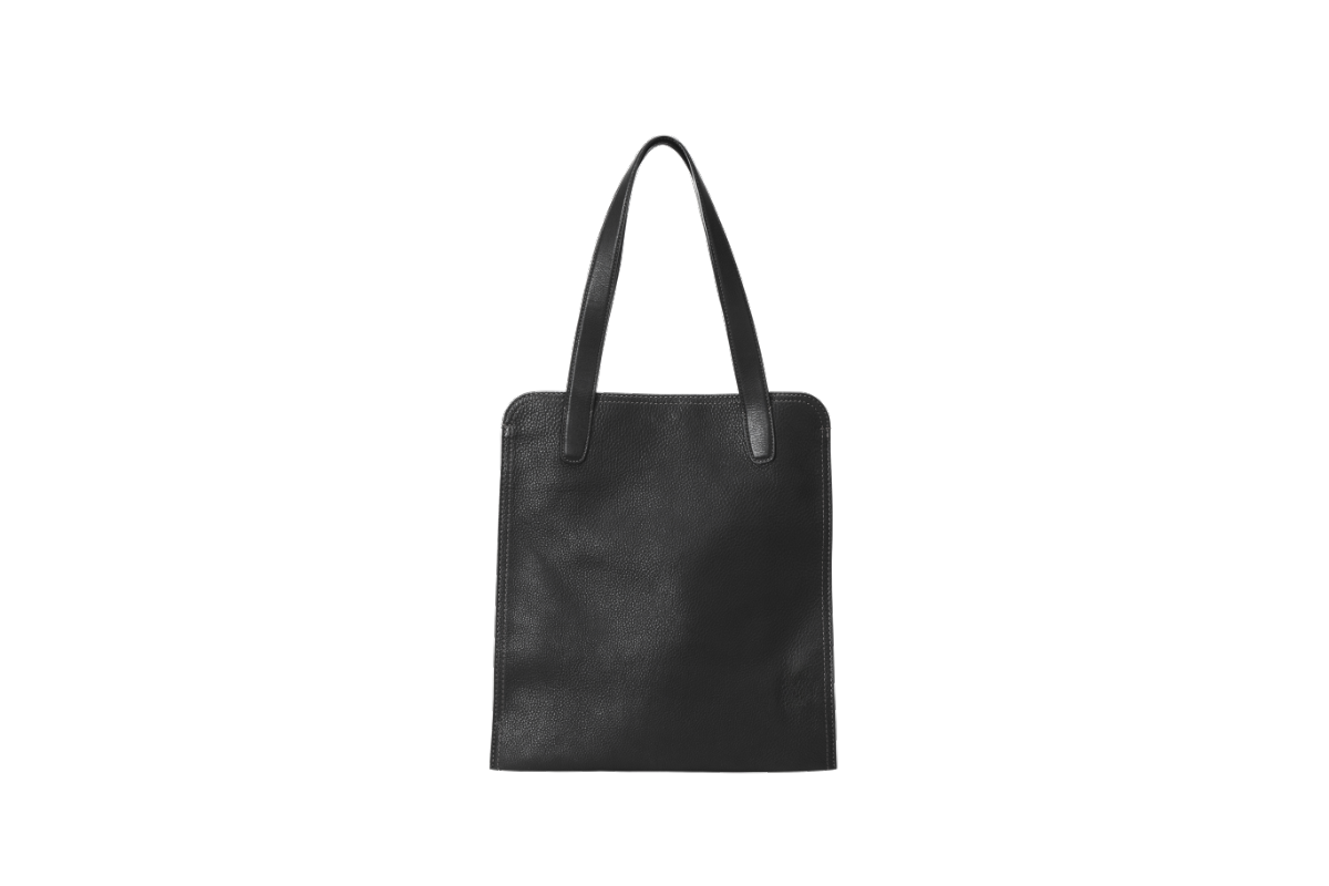 折り畳みの底マチで自在に使えるスリムなトート。ノートPCを収納可能で、一枚革を贅沢に使った形は経年変化も楽しみです。