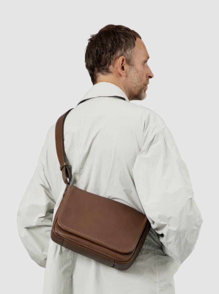 必要最小限をスマートに持ち歩けるボディバッグ。キャッシュレス向けの小型財布+スマホ+αの手荷物をミニマルに収納できます。