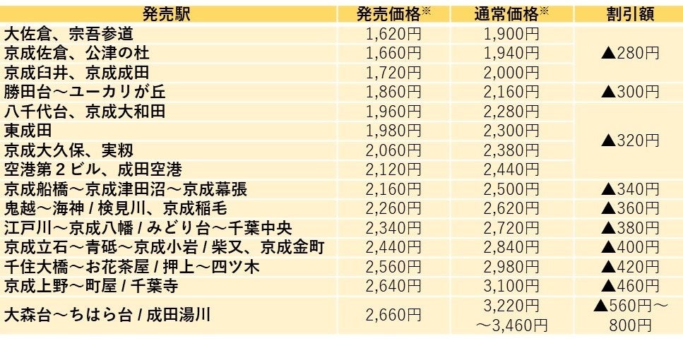 ※上記①「京成線往復乗車券」は、京成本線経由のみ有効です。