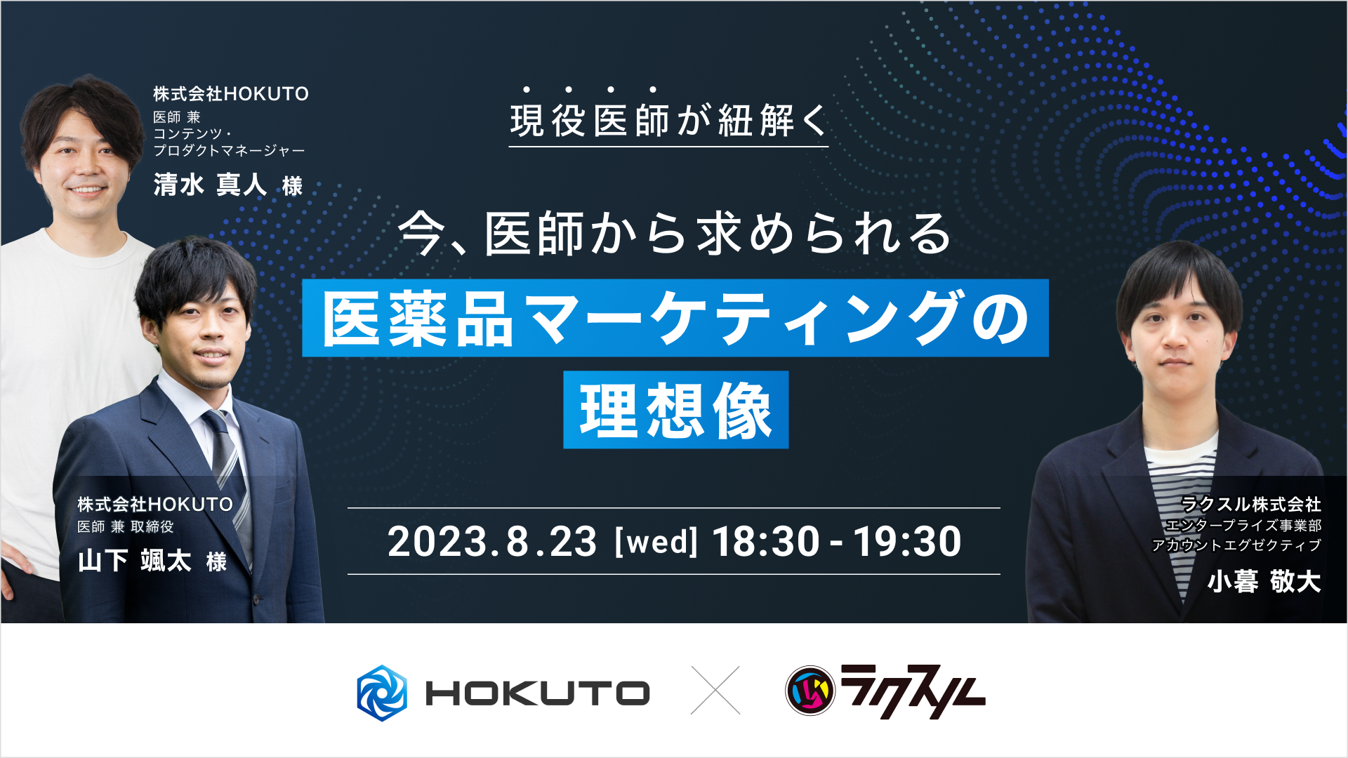 【2023年8月23日(水)HOKUTO×ラクスル】現役医師が紐解く今、医師から求められる医薬品マーケティングの理想像セミナー