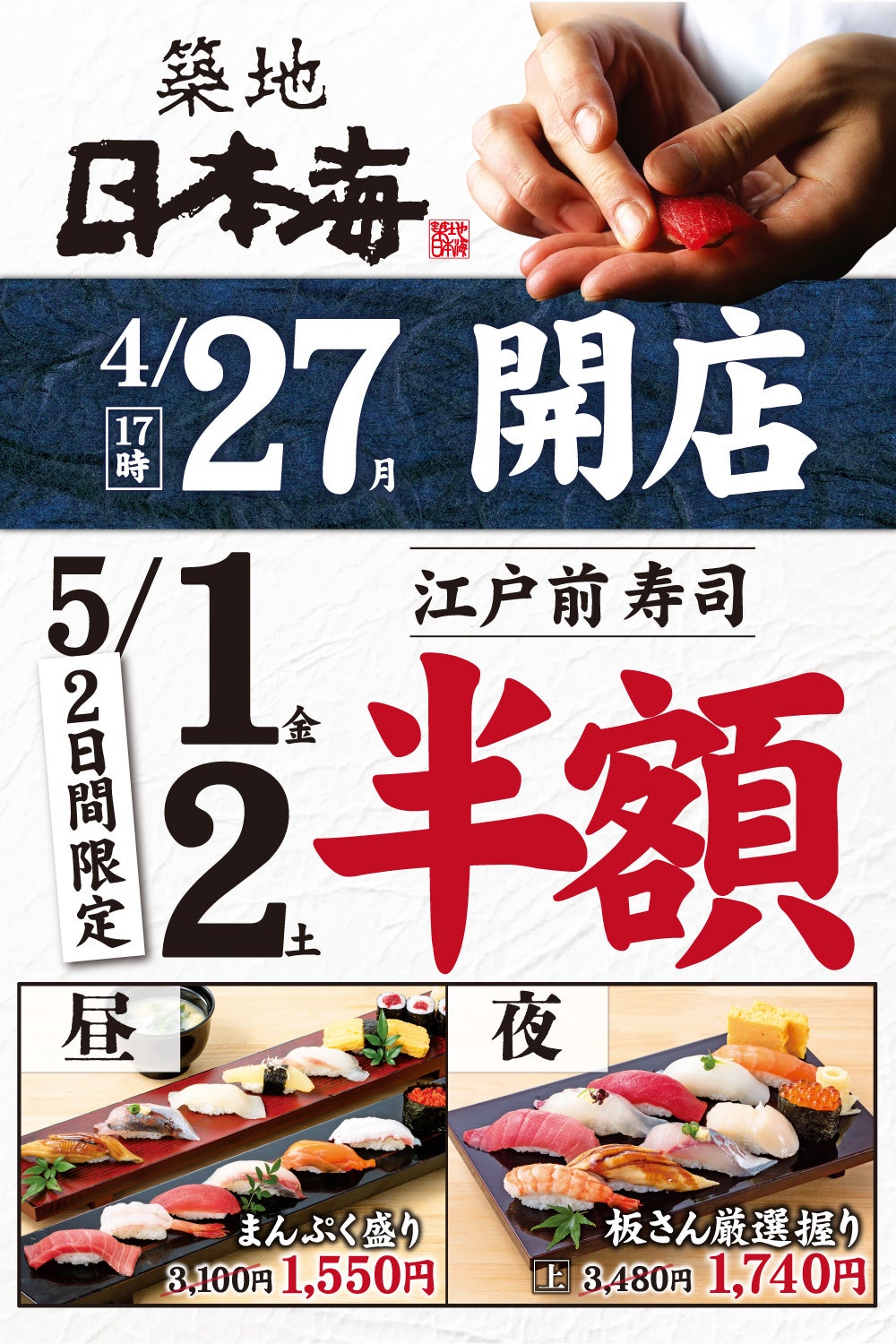 【衝撃】GWの5/1・2になんと寿司が“半額”!!ついに『築地日本海』が築地に旗艦店オープン