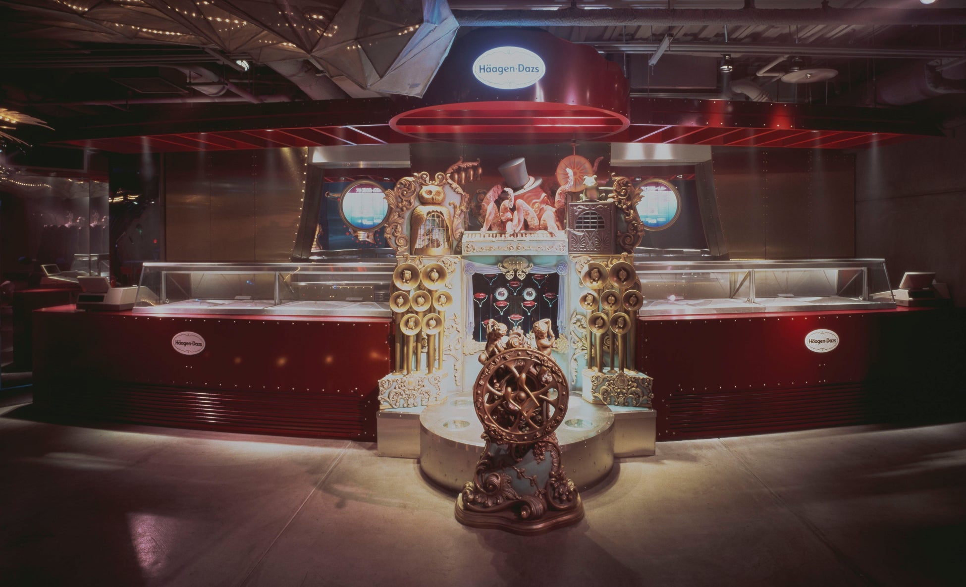 フランス語でサーカスを意味するショップ「シルク・ド・ハーゲンダッツ戎橋」が大阪・戎橋にオープン。店内にはメリーゴーラウンドや、声に反応して動く空中ブランコなどがあり、エンターテインメント感覚でアイスクリームを楽しめるお店として話題になりました。
