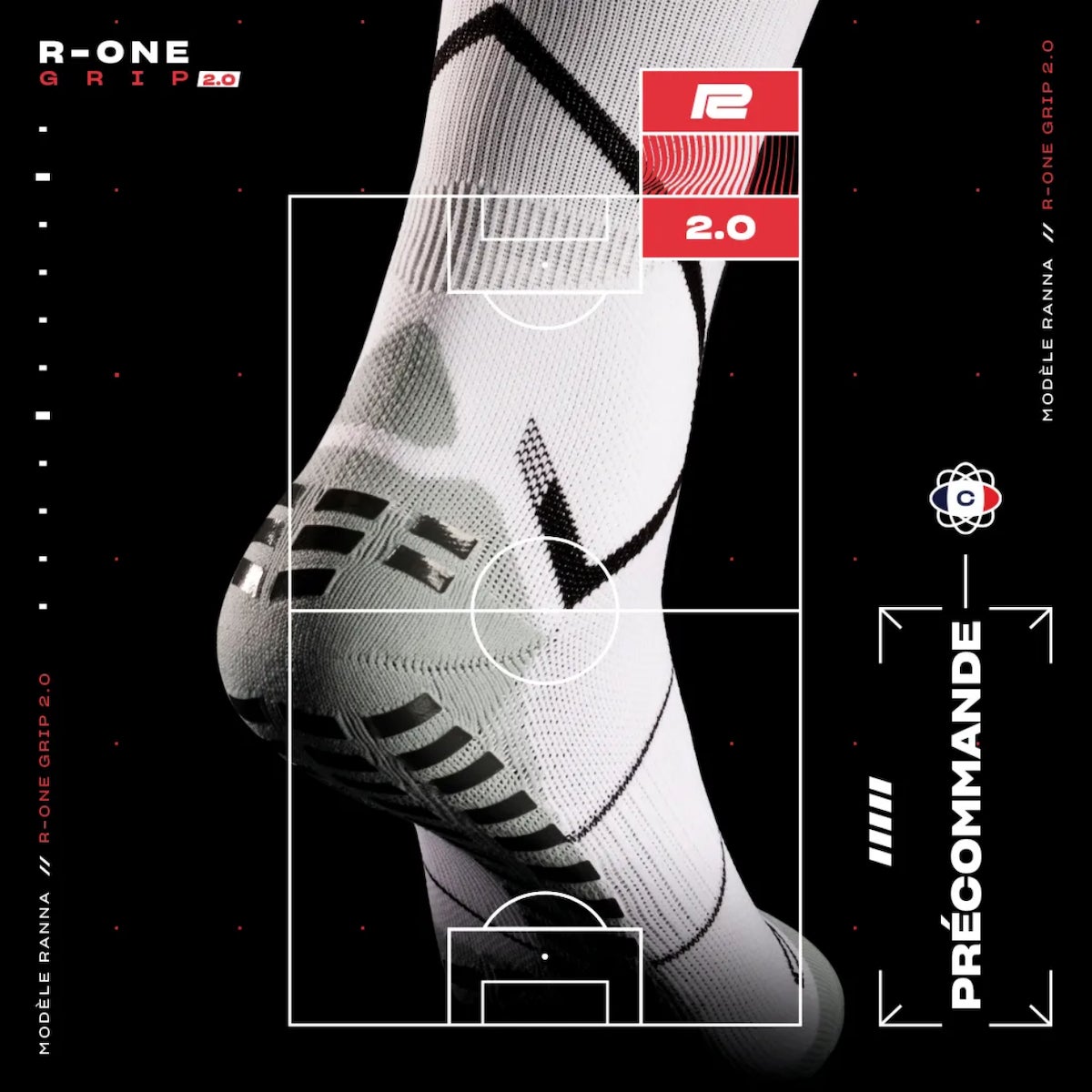 プロのアスリートのために開発された高機能グリップ付きの“R-ONE GRIP 2.0”は、超粘着性の人間工学的グリップと動的な圧縮構造を実現。極細のグリップが足首のねじれ軽減や重心位置のサポート、土踏まずのサポートを提供しています。