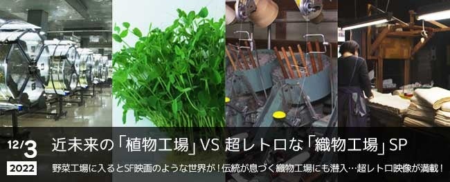 今や野菜を工場で作る時代…工場に入るとSF映画のような世界が広がった!一方、伝統が息づく織物工場にも潜入…超レトロ映像が満載!