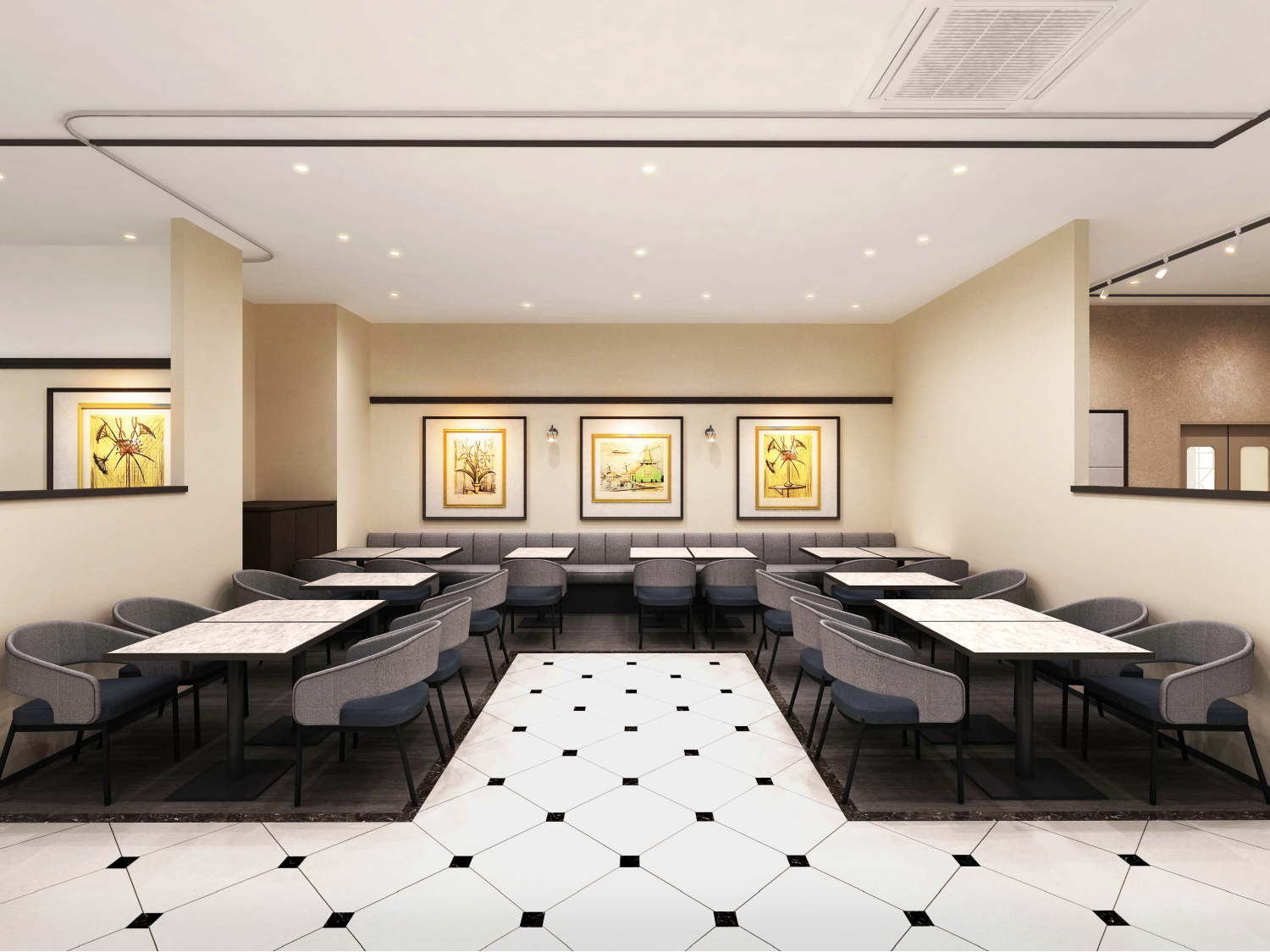 ブッフェエリアを拡張し、席数を増設する一方で、ゆったりと召し上がれるよう配置や動線にも配慮した快適な空間を実現いたしました。青森県産ブナ材を使用した木工品「BUNACO」のペンダントランプや、津軽びいどろの花瓶を取り入れ、青森の文化を感じられる演出も行っています。